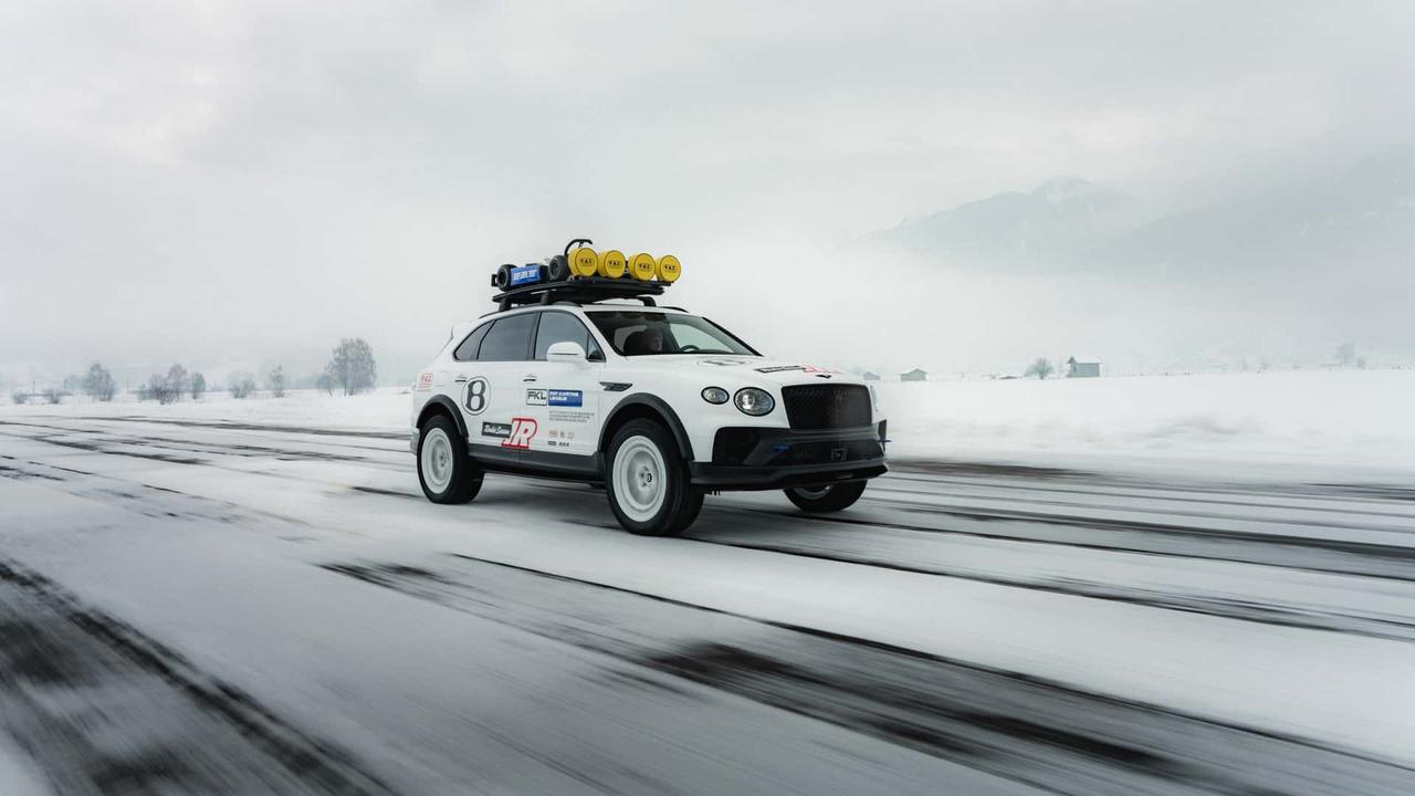 添越X概念车近期在奥地利滨湖采尔举行的FAT冰雪赛上首次亮相,这或许是有史以来最好的宾利添越。 X概念车的原型是添越Speed,搭载一台4.0升双涡轮增压V8发动机,拥有641马力。相较于量产版本,概念车换装了22英寸锻造轮毂和全地形轮胎。同时,概念车还拥有更宽的轮距、更高的离地间隙、加宽的轮拱以及大量的车顶辅助照明灯。 更有趣的,概念车还在车顶行李架上加装了一台电动卡丁车,这辆卡丁车源自FAT卡丁车联盟,适合5到17岁的孩子。【来自懂车帝车友圈】