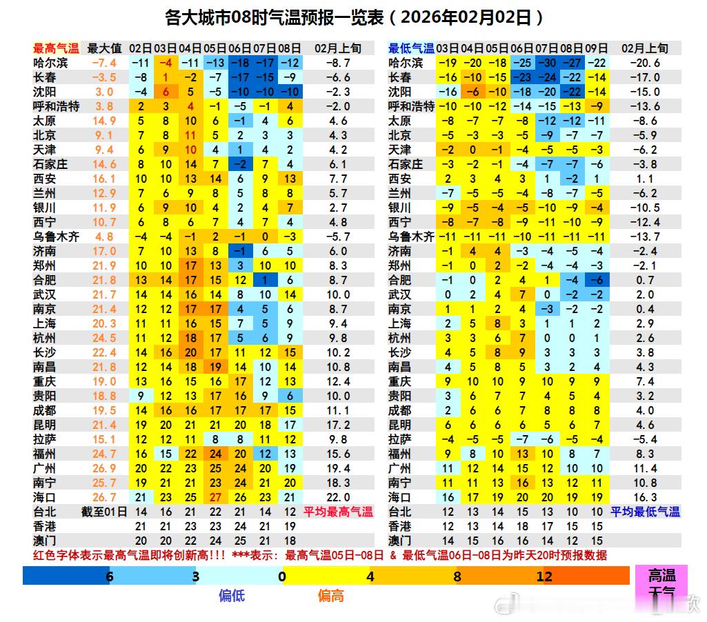 2、气温本周气温呈现冲高回落趋势。东北地区在2月3日达到近期气温高点,华北到江南多地在2月4日达到高点。华南一带在2月5日达到高点。预计2月5-7日,中东部大部地区气温将自北向南下降6~10℃,其中东北地区东部、江南的部分地区降温可达12~16℃;长江中下游以北大部地区有4~6级偏北风。