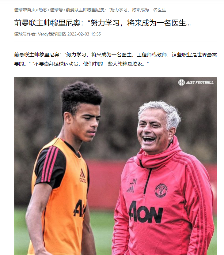 穆里尼奥原来还说过这话?那我倒是要对他高看一眼了