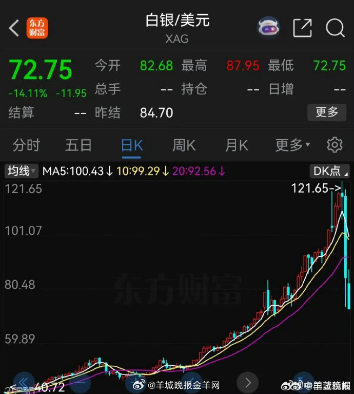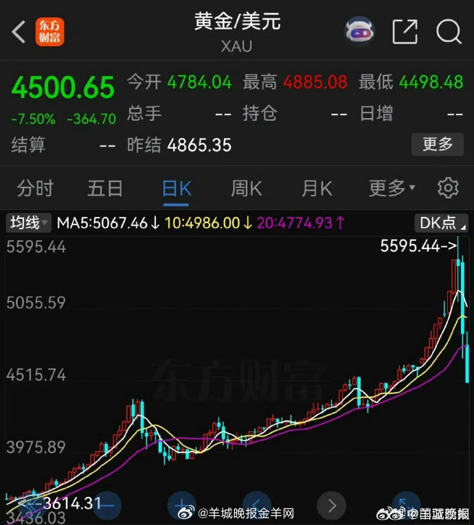#金银价继续大跌# 【#白银1个月涨幅2天跌没了#】#国际金价跌去近1000美元# 2日午后,黄金、白银价格继续下探。现货黄金向下跌破4500美元/盎司,日内下跌7.5%。现货白银日内跌幅超14%,近一个月涨幅已抹平。#上海黄金交易所紧急出手#(来源:中国蓝新闻、财联社)