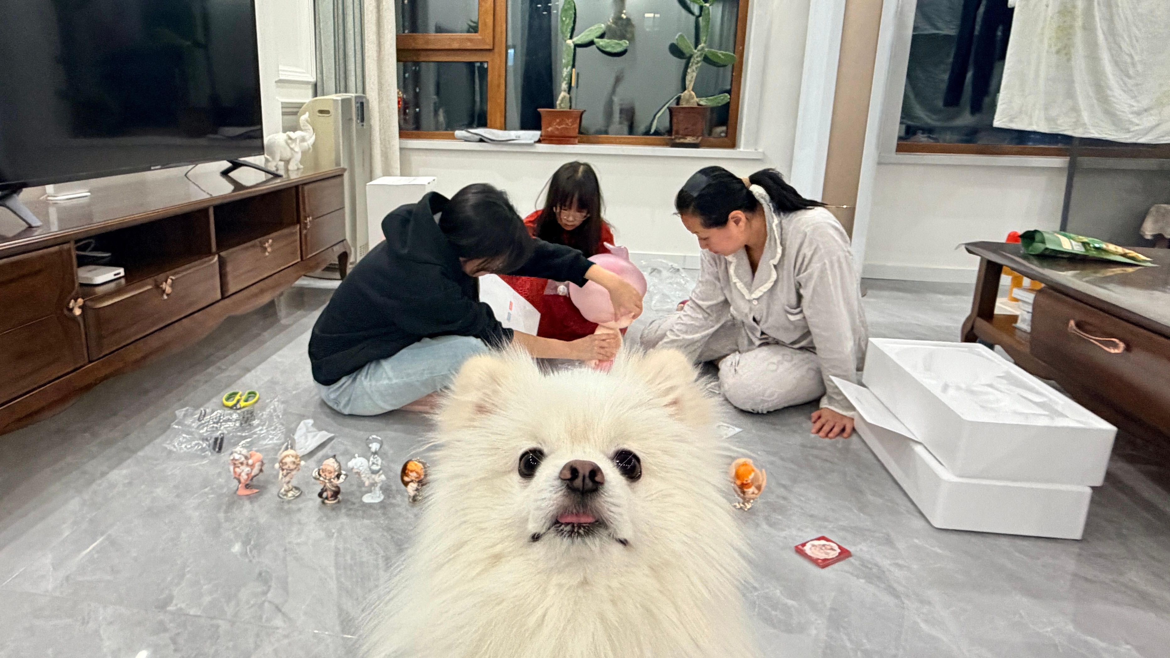来姐姐家,跟三个小孩玩(还有一个毛孩儿),我姐说我这个小姨太惯孩子每次我一来她俩都不爱睡觉不爱学习就是跟小姨贴贴,小外甥女发着烧也要下地走两圈说怕她病的严重小姨就不来看她了