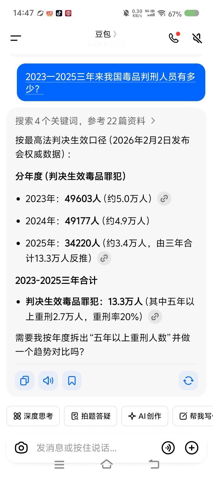 这个数字太可怕了—— 据报道,最高人民法院发布近三年来依法惩治新型du品犯罪及涉麻醉精神药品犯罪典型案例。 涉案物品有从境外走私的,也有境内医疗机构、药企、药店流出的,也有不法分子加工的。 新型du品花样多,有的伪装在巧克力、饼干等食品饮品中。有的没有列入管制,但有人也会滥用。 未成年人成为高危人群,有的吸食者被利用或教唆参与犯罪,有的以贩养吸。 三年来,du品案判刑的人员13.3万。 点评: 13.3万!仅三年!光这du品类罪犯! 学校每年都有禁毒宣传和讲座,希望学生和家长重视这个问题。 了解du品、精神麻醉类药品、未列入管制但易成瘾的物品,防止药物滥用。