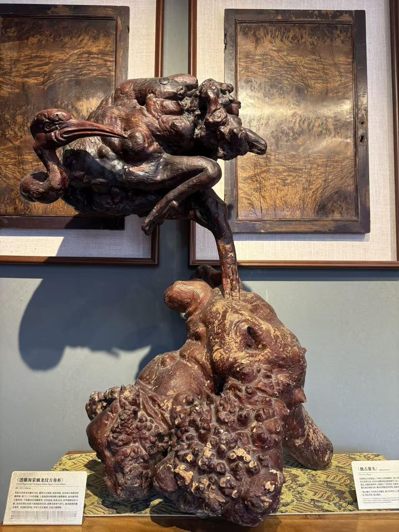 记录我的2026 2026年,在西海美术馆看到的根雕简直绝了。那些根雕形态各异,有的像展翅欲飞的雄鹰,仿佛下一秒就要冲破空间的束缚;有的像蜿蜒的巨龙,盘旋在岁月的长河里。 每一件根雕都保留着树根原本的纹理,那是岁月刻下的痕迹,与艺术家的雕琢完美融合。在灯光的映照下,根雕的质感更加凸显,让人忍不住凑近细细观赏。这些根雕不仅是艺术品,更是自然与人类智慧碰撞的结晶。这次在西海美术馆与根雕的相遇,绝对是2026年值得记录的珍贵瞬间。