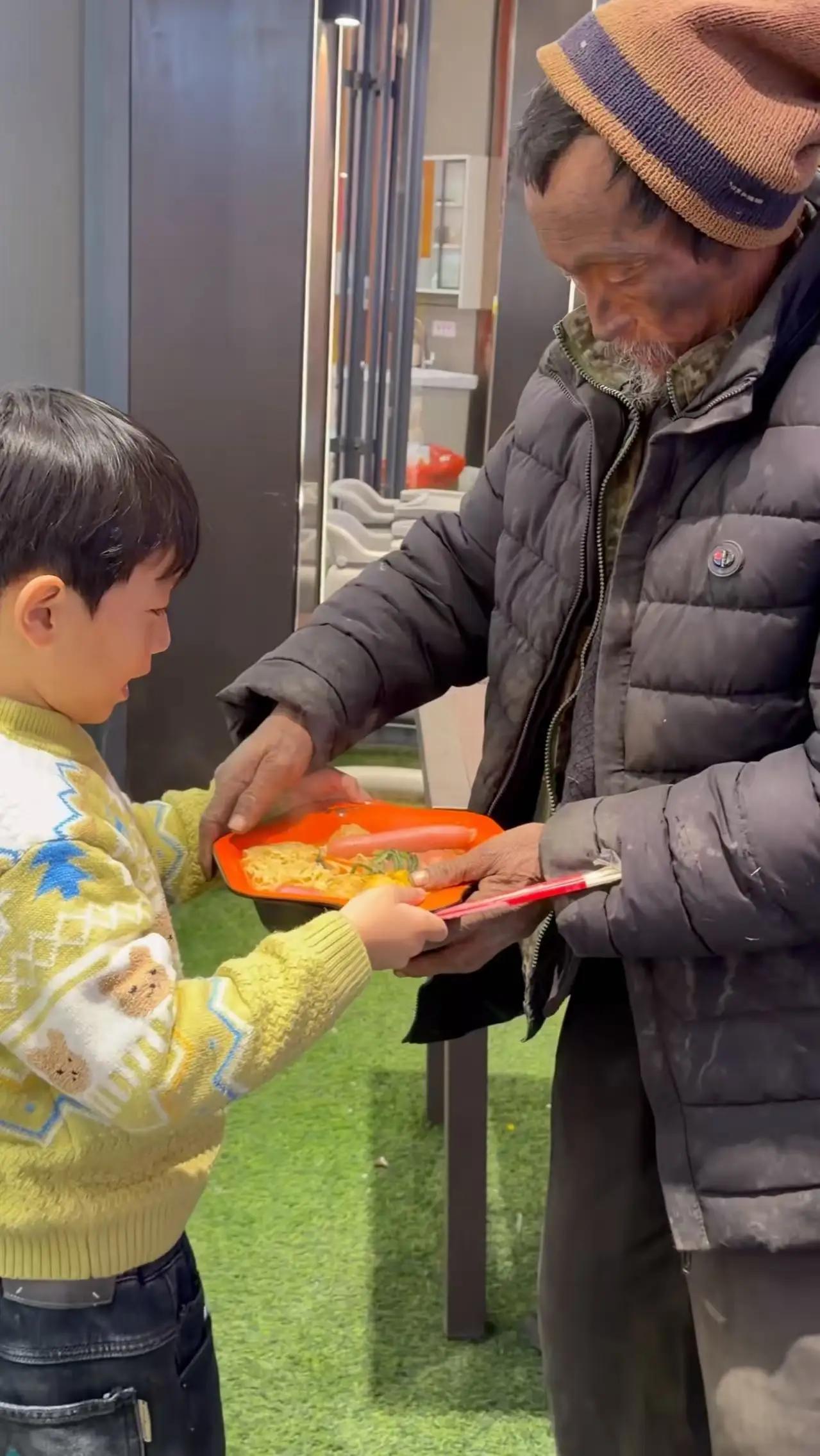 泪目!小男孩很喜欢吃麻辣烫,缠着妈妈带他去吃,可是麻辣烫刚端上来,一位衣衫破旧的拾荒老人,拄着拐杖,捧着旧盆,趴在玻璃上往里看,那渴望的表情,让孩子看见没有丝毫犹豫,直接端起自己的麻辣烫,快步走出去! 就在那一瞬间,空气似乎都凝固了。小男孩的动作如此坚定,仿佛在告诉世界:我知道你需要这个。那位老人或许平日里默默忍受着生活的苦涩,但此刻,他的眼中却燃起了一丝久违的光亮。孩子的善意,就像一束温暖的阳光,穿透了阴霾,也照亮了我们心中那片被忽略的角落。 路灯下,小男孩快步走到老人身旁,把手中的麻辣烫递了过去。“叔叔,你要不要尝一口?”他的声音清脆而纯真,带着一份天真无邪的关怀。老人抬起头,眼眶微微泛红,嘴角扬起一抹哀而不伤的笑容,“谢谢你,小朋友。”那一刻,所有的冷漠都被融化,只剩下一份温暖在空气中弥漫。 有人说,善良是这个世界上最稀缺的宝藏,但我相信,它其实一直都在,只等待我们用心去发现。这个小男孩用行动告诉我们:善意不需要华丽的言辞,只需要一个真诚的心。也许,他的举动微不足道,但它却像一颗种子,在许多人心中生根发芽。 这不仅仅是一场简单的善行,更是一面镜子,映照出我们这个社会的温度。我们是否还记得那份最初的纯粹?是否还愿意在繁忙和冷漠中,留下一点点善意的余地?每个人的善举,都是对人性最深的呼唤。 而更令人深思的是:当我们被社会的快节奏冲得麻木时,是否还能像这个小男孩一样,保持那份纯粹的善良?在他的小小世界里,或许没有太多物质的奢华,但那份善意,却比任何金钱都珍贵。它让我们相信,哪怕是最普通的一个人,也能点亮别人的生命。 这个故事,激起了我对“善良”的重新思考。我们是不是都在追逐所谓的成功和物质,却忽略了最基本的人性之光?也许,下一次当你看到需要帮助的人时,不妨像这个小男孩一样,伸出你的手。因为,善良本身,就是这个世界最美的风景。 让我们都成为那个传递温暖的人。不要等到下一次感动的瞬间到来,而是用行动去创造更多的感动。因为,善良的种子,一旦播撒,就会在无声中开花结果。这个世界,也会因此变得更加美好。麻辣烫 麻辣烫刚端老人吃