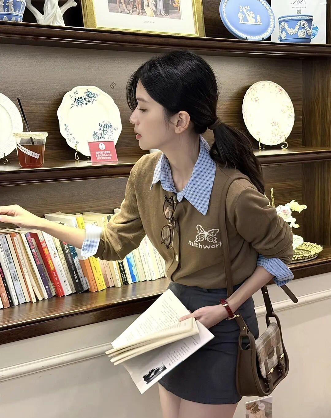 复古风咖啡馆,手捧绿瓶,时尚穿搭,少女心满满!💚📸