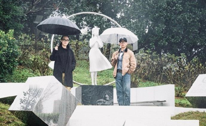 具俊晔和艺术总监甚至专门找了一个角度来合影!大S雕像具俊晔是大S墓碑的路标