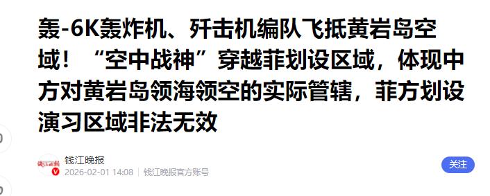 中国终于出手,菲律宾不敢说话了! 中国军方出动轰-6K轰炸机,与多架歼击机,组成空中编队,飞抵黄岩岛空域,并果断穿越,菲律宾划设的——所谓“禁飞区”! 轰-6K是咱中国自主研发的中远程轰炸机,也是空军战略转型的标志性装备。 它跟老款比改进太大了,取消了所有机炮,机头改成了全封闭的雷达罩,装了先进的制导雷达和光电球。 还换装了更省油、推力更大的涡扇发动机,最大航程能到9000公里,作战半径将近4000公里。 而且它还取消了尾部的无线电操作员舱,改成了电子舱,装了大功率的电子干扰设备,座舱也换成了玻璃化的,操作更简单,飞行员负担也轻了。 这次挂的鹰击-12反舰导弹更厉害,射程能到400公里,专门用来打击大型水面舰艇,咱的轰-6K在黄岩岛附近一升空,射程完全能覆盖菲律宾首都马尼拉。 还有它大部分重要城市和军事基地,说白了就是明着告诉菲律宾,再敢胡来,随时能反击,它根本没有还手之力。 自2015年起,轰-6K就常态化在南海战巡,早就成了守护咱领土主权的主力,这次挂实弹出行,就是要给菲律宾敲警钟。 要说最解气的,就是菲律宾的反应,咱的编队一到,它之前的嚣张气焰瞬间就没了,全程没敢有任何拦截动作。 之前企图闯黄岩岛的船也灰溜溜地往回跑,就连和美国的联合军演,也草草收兵,说白了就是彻底认怂了。 其实道理很简单,菲律宾心里比谁都清楚,它的军事力量跟咱中国比,差得不是一星半点,根本不是一个量级,之前的挑衅,不过是靠着美国撑腰的口头逞强。 而它抱的美国大腿,也根本靠不住,美国只是把它当成挑衅中国的棋子,根本不会真的为了它和中国翻脸。 早在咱出手前,美国的航母就已经溜到中东去了,根本没打算留下来帮它。 咱中国这次的行动,可不是一时兴起的临时回应,而是长期的、常态化的部署。 南部战区早就明确表态,会持续加强黄岩岛周边海空域的巡逻警戒。 早在2024年8月,南部战区就曾在黄岩岛附近开展过联合战巡,检验侦察预警、快速机动和联合打击能力,就是要夯实对黄岩岛周边的实际管控,杜绝菲律宾这种不知天高地厚的挑衅行为。 菲律宾这次就是打错了算盘,错把美国的虚情假意当成靠山,错把自己的不自量力当成底气,以为拉上美国、搞一场军演,就能篡改黄岩岛的主权归属,就能霸占咱的领土,简直是异想天开。 咱中国这次出手,既展示了捍卫领土主权的坚定决心,也亮出了强大的军事实力,让全世界都看清了一个事实。 中国的领土主权,神圣不可侵犯,任何国家的挑衅行为,都必将受到中国的坚决反制。 咱中国人向来是不想惹事,但也从来不怕事。 这次穿越所谓的“禁飞区”,就是要告诉全世界,对于自己的固有领土,中国有决心、更有能力守护好。