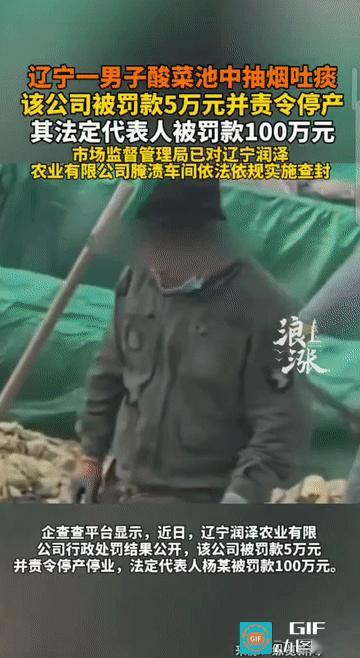 “太恶心了!”辽宁,许多工人正在一池发酵中的酸菜中工作,其中一男子格外显眼,只见他站在酸菜池中用钢叉翻动酸菜,一边抽烟一边将痰随口吐入酸菜池,整个过程看起来非常随意,根本没有察觉到有什么不对,好似这就是非常正常的一个举动! 来源:【浪涨新闻】 根据兴城市市场监督管理局调查,这起事件发生在辽宁润泽农业有限公司厂区! 酸菜池由凌海隆盛腌渍菜厂租用,视频中抽烟吐痰的工人正是隆盛腌渍菜厂的员工! 视频显示,男子在酸菜生产车间中用钢叉将大量酸菜铲至一旁,长达30秒的视频里,该男子一直吸烟,同时在酸菜池中随地吐痰,画面令人作呕! 监管部门在接到举报当晚就迅速行动,该批次酸菜已被全部扣押,未流入市场,并将按照相关操作规程销毁。对违法企业和相关责任人,当局表示将依法严惩、绝不姑息! 行政处罚决定书详细列举了辽宁润泽农业有限公司的多项违规行为! 根据处罚决定书,辽宁润泽农业有限公司被罚款5万元并责令停产停业,而法定代表人杨勇个人被处以高达100万元的罚款! 这次处罚并不仅因单一事件。调查发现,该公司存在系统性管理问题,2025年3月14日曾因未落实安全主体责任问题被下达责令整改! 但公司一直未进行实质有效整改,违法行为持续时间已达半年以上! 深入调查揭示了辽宁润泽农业有限公司在食品安全管理上的系统性缺失! 公司未建立落实食品安全管理制度,未配备食品安全管理总监或食品安全管理员。从进货查验、生产过程控制到产品检验、食品安全自查、从业人员管理,关键环节均存在管理缺失! 厂区卫生环境脏乱,设施设备布局不合理,食品安全风险隐患突出。这些问题已对社会造成严重不良影响! 兴城市市场监管局的查封令贴在辽宁润泽农业有限公司腌渍车间的大门上,红章鲜亮。厂区内散落的烟头、空荡的酸菜池与仍在发酵的酸菜气味交织! 车间外墙上,“民以食为天,食以安为先”的标语已经开始褪色,与车间内被查封的设备形成讽刺对比!