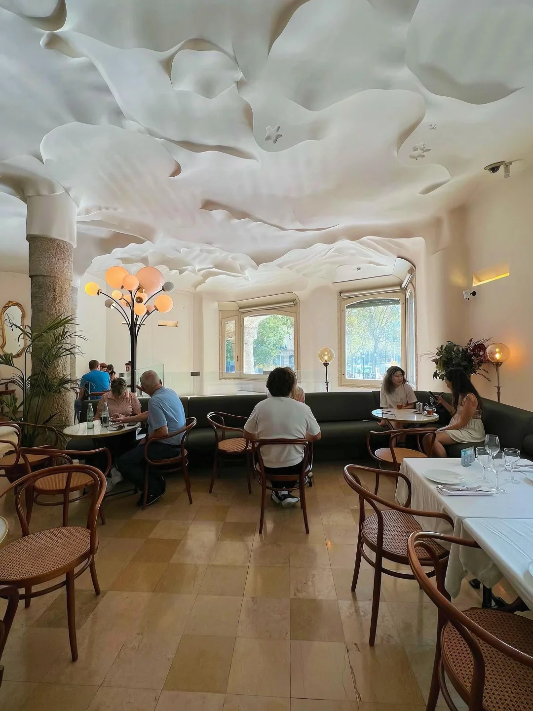 又名 Cafè Modernista,位于巴塞罗那标志性建筑米拉之家内,在这里不仅能享受美食,还能沉浸在高迪设计的奇幻氛围中。店内保留了高迪时代的装饰元素,如波浪形天花板和马赛克细节。部分露台座位可俯瞰Passeig de Gràcia大街,适合观景