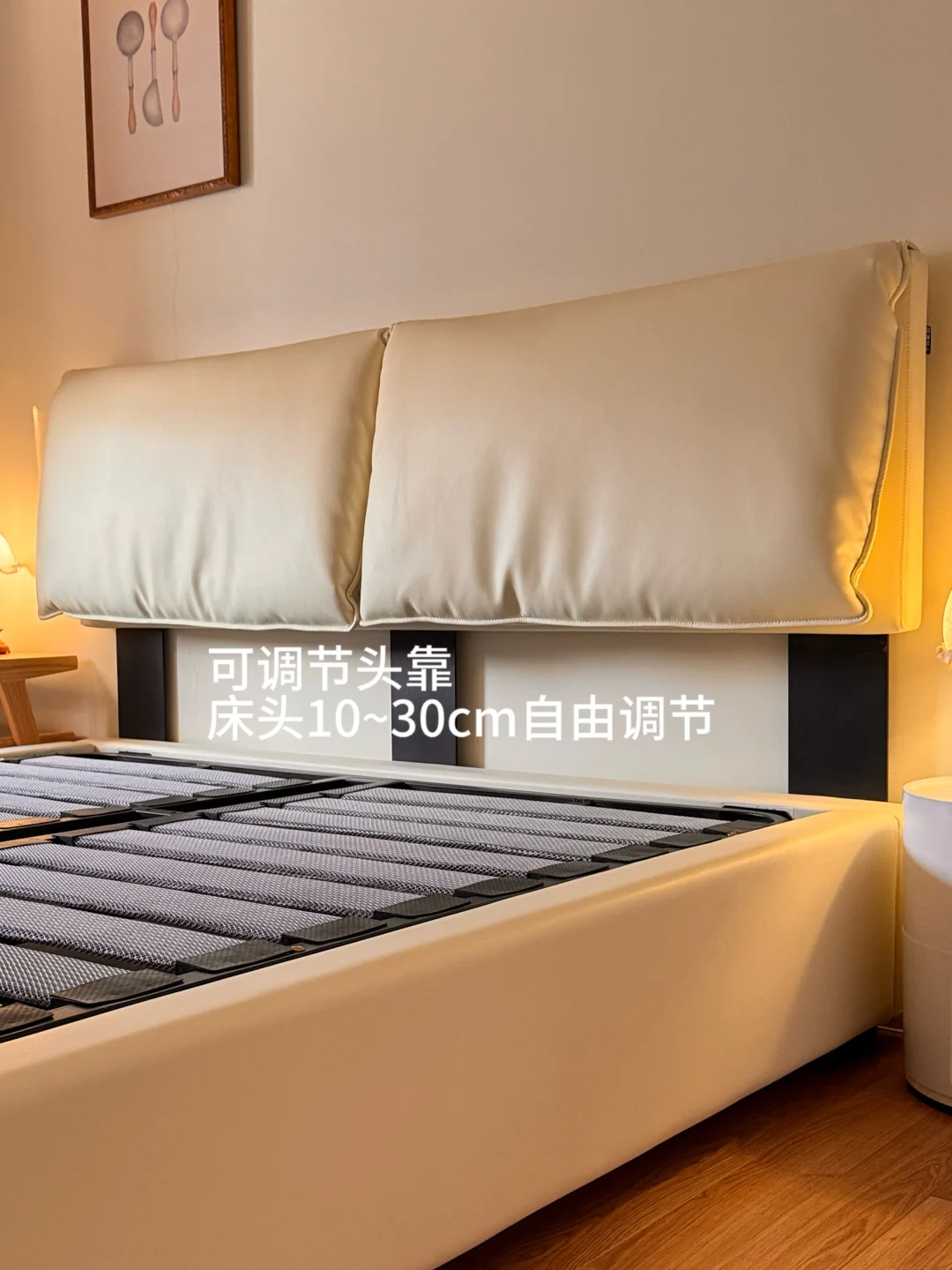 可调解高度的头层牛皮靠包软而不塌,睡前追剧、看书都能稳稳托住后背,治愈感拉满~ 真皮材质还好打理,湿抹布一擦就干净,懒人狂喜!