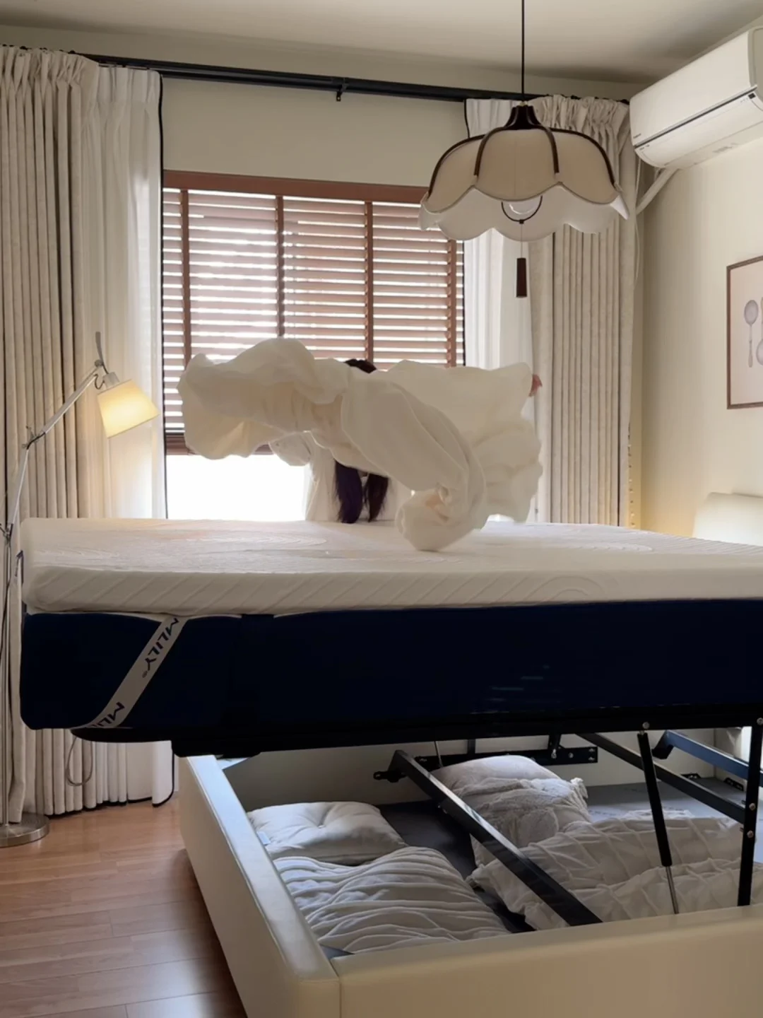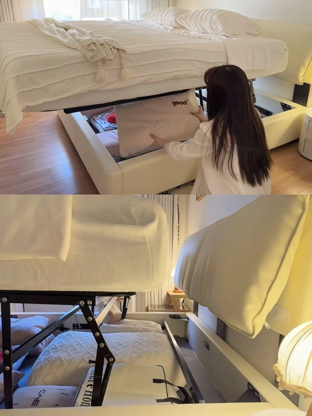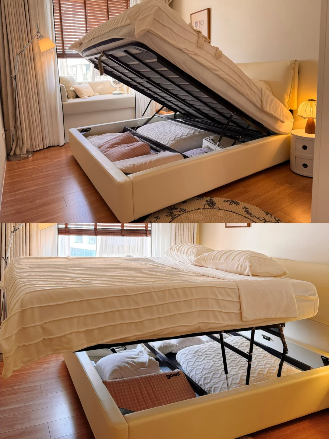 床底储物真的香!平移开合超轻松,女生也能单手掀开,换季被褥、闲置四件套全收纳,卧室始终清清爽爽~