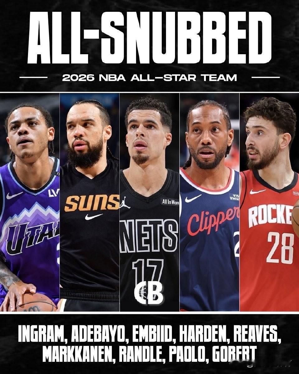 2026年NBA全明星遗珠阵容: 基昂特·乔治 狄龙·布鲁克斯 小迈克尔·波特 科怀·伦纳德 阿尔佩伦·森根 布兰登·英格拉姆 巴姆·阿德巴约 乔尔·恩比德 詹姆斯·哈登 奥斯汀·里夫斯 劳里·马尔卡宁 朱利叶斯·兰德尔 保罗·班切罗 鲁迪·戈贝尔 谁应该入选全明星? 这14位球员在2026年的NBA赛场上都有着各自独特的表现,他们未能入选全明星着实让人感到有些遗憾。 基昂特·乔治,这位年轻的后卫有着出色的得分能力和三分投射技巧。在比赛中,他常常能在外线用精准的三分打破僵局,为球队拉开比分。他的突破也颇具威胁,犀利的切入总能给对手防线造成麻烦。假以时日,他若能进一步提升自己的组织能力,未来入选全明星或许只是时间问题。 狄龙·布鲁克斯,以强硬的防守风格著称。他在场上从不畏惧与任何超级巨星对抗,用自己的身体和斗志去限制对手的发挥。同时,他的进攻也在不断进步,关键时刻的三分出手总能给球队带来惊喜。他的这种“硬派”作风,是球队不可或缺的精神领袖。 小迈克尔·波特,拥有出色的身高和投篮手感。他在进攻端的表现堪称高效,无论是中距离还是三分线外,都能轻松命中。他的篮板能力也在逐渐提升,在球队的内线攻防中起到了重要作用。如果他能保持健康,入选全明星是完全有可能的。 科怀·伦纳德,这位低调且实力强劲的球星,虽然已经过了职业生涯的巅峰期,但他的比赛经验和关键时刻的大心脏表现依然让人敬畏。他的防守依然是球队的一道坚固屏障,进攻端的单打能力更是让对手防不胜防。他的存在,让球队在任何比赛中都有获胜的可能。 阿尔佩伦·森根,内线的一股新生力量。他有着出色的身体条件和灵活的脚步,在篮下的进攻手段丰富多样。他的篮板和封盖能力也在不断提高,是球队内线的重要支柱。随着比赛经验的积累,他入选全明星的机会也会越来越大。 布兰登·英格拉姆,技术全面的前锋。他的得分手段多样,既能在外线投篮,也能突破到内线得分。他的传球视野也很开阔,能够为队友创造出良好的进攻机会。他在比赛中的稳定表现,让他成为球队的核心球员之一。 巴姆·阿德巴约,内线的悍将。他的防守积极主动,篮板能力出色,在篮下的对抗中不落下风。进攻端,他的二次进攻和篮下强攻是球队得分的重要手段。他的全面性让他在球队中扮演着重要的角色。 乔尔·恩比德,联盟顶级的中锋。他拥有出色的得分能力和篮板能力,在篮下的统治力十足。他的技术全面,既能单打,也能传球,是球队进攻的核心。虽然他入选全明星的呼声一直很高,但这次的遗珠阵容也证明了竞争的激烈。 詹姆斯·哈登,这位曾经的得分王,虽然状态有所下滑,但他的组织能力和关键时刻的得分能力依然不容小觑。他的传球常常能为队友创造出绝佳的得分机会,是球队进攻的组织者。他的经验和领导力,也是球队宝贵的财富。 奥斯汀·里夫斯,凭借着自己的努力和出色的表现,在联盟中站稳了脚跟。他的三分球和防守能力都很出色,在比赛中常常能起到奇兵的作用。他的拼搏精神和团队意识,让他成为球队中受欢迎的球员。 劳里·马尔卡宁,有着出色的投篮能力和篮板能力。他在外线的三分球命中率很高,是球队拉开空间的重要武器。他的内线进攻也有一定的威胁,是球队进攻的重要组成部分。 朱利叶斯·兰德尔,球风强硬的前锋。他的篮板和得分能力都很出色,在比赛中能为球队提供稳定的输出。他的斗志和激情,也能带动球队的士气。 保罗·班切罗,作为新秀,他展现出了极高的天赋和潜力。他的技术全面,进攻手段多样,在比赛中能够迅速适应节奏。他的未来充满了无限可能,入选全明星或许只是他职业生涯的一个小目标。 鲁迪·戈贝尔,以出色的防守和篮板能力著称。他是球队内线的守护神,能够有效地限制对手的内线得分。他的存在,让球队在防守端更加稳固。 综合来看,这些球员各有特点和优势。如果一定要选出几位应该入选全明星的球员,乔尔·恩比德凭借他在中锋位置上的统治力,无疑是最有竞争力的。詹姆斯·哈登的经验和组织能力,也让他有足够的理由入选。而保罗·班切罗作为潜力新星,他的表现也值得肯定。当然,这只是一种观点,每个人心中都有自己的答案,NBA的魅力也正体现在这种激烈的竞争和多元的选择之中。