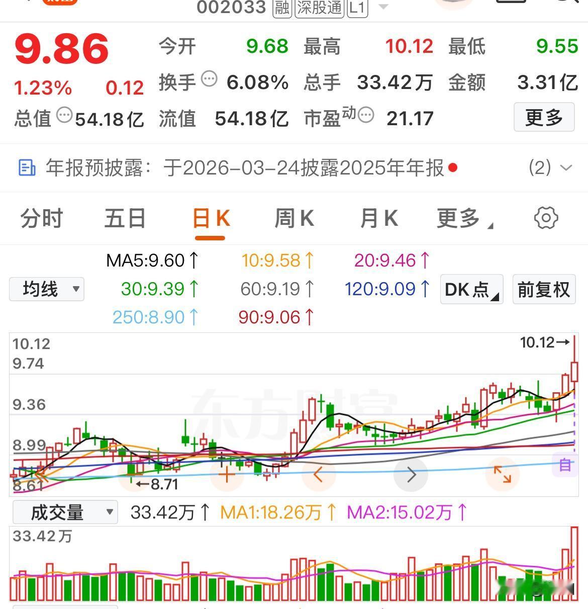 今日趋势个股还可以关注吗? 博纳影业:今天虽然上涨,还是有分歧,明天看多空谁胜? 浙文互联:AI应用,量能充沛,主力资金流入,但卖盘比较多,注意风险。 新华都:看能不能挑战前高,否则还是注意回踩。 锐新科技:还有新高潜力,关注 5日线。 三维天地:注意55压力,想上涨还需放量。 丽江股份:看挑战前高10.34,5日线可关注。 值得买:AI应用,关注量能能否放量。 黄山旅游:放量太大,注意回踩五日线。 影视传媒股 博纳股票