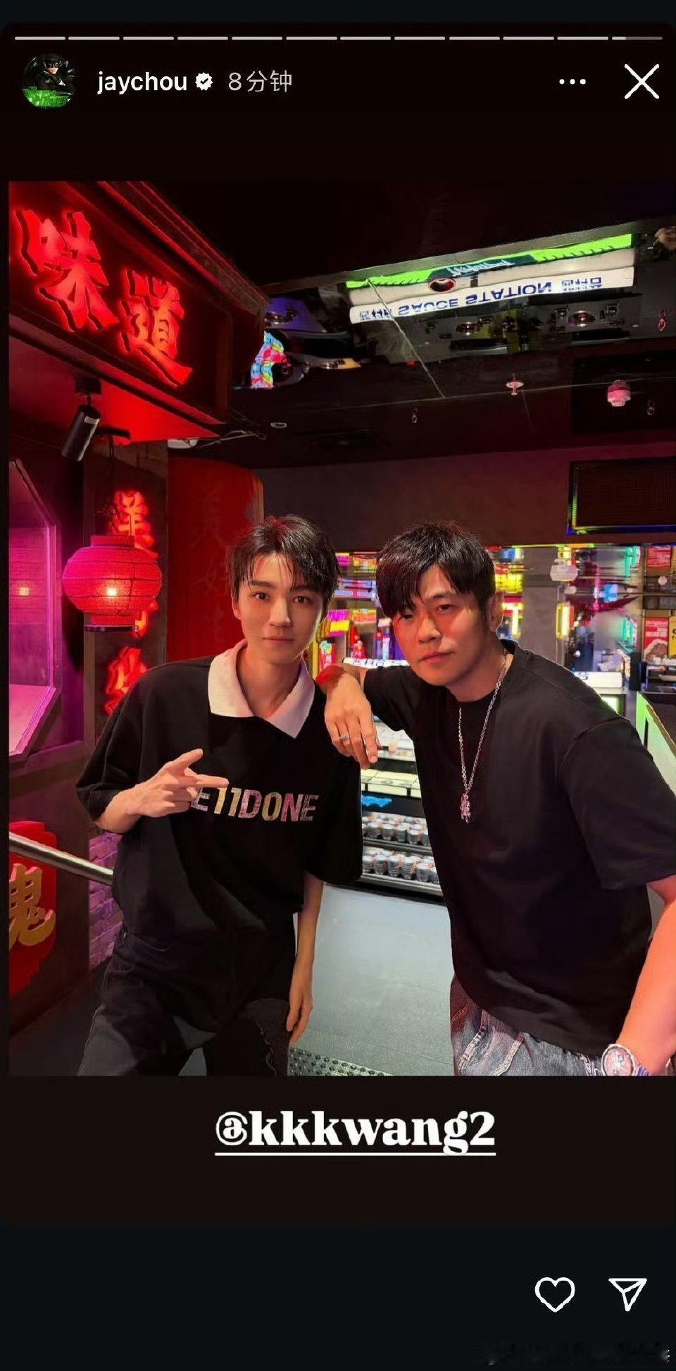 王俊凯分享与周杰伦合照王俊凯分享与周杰伦合照!这么多年一直都是一样的姿势王俊凯