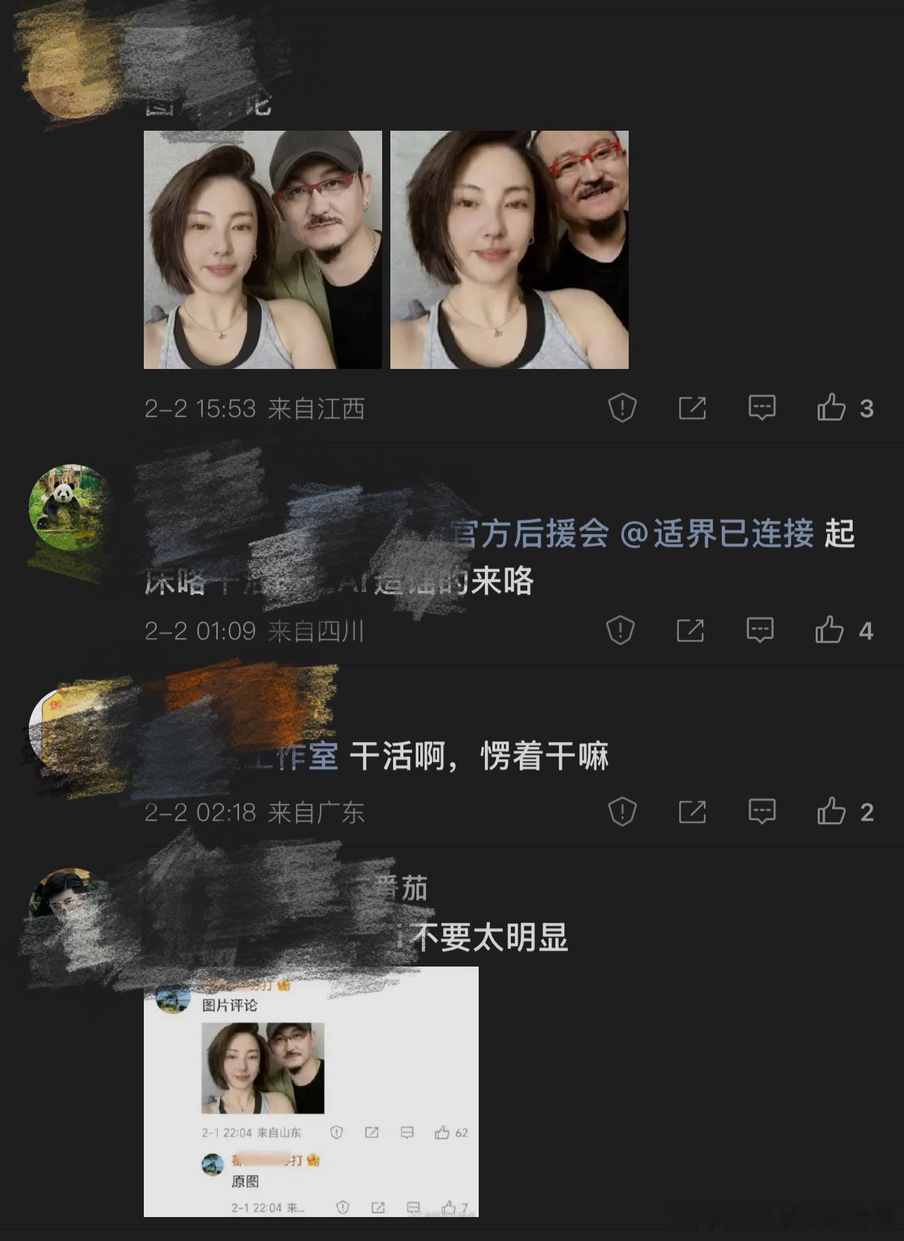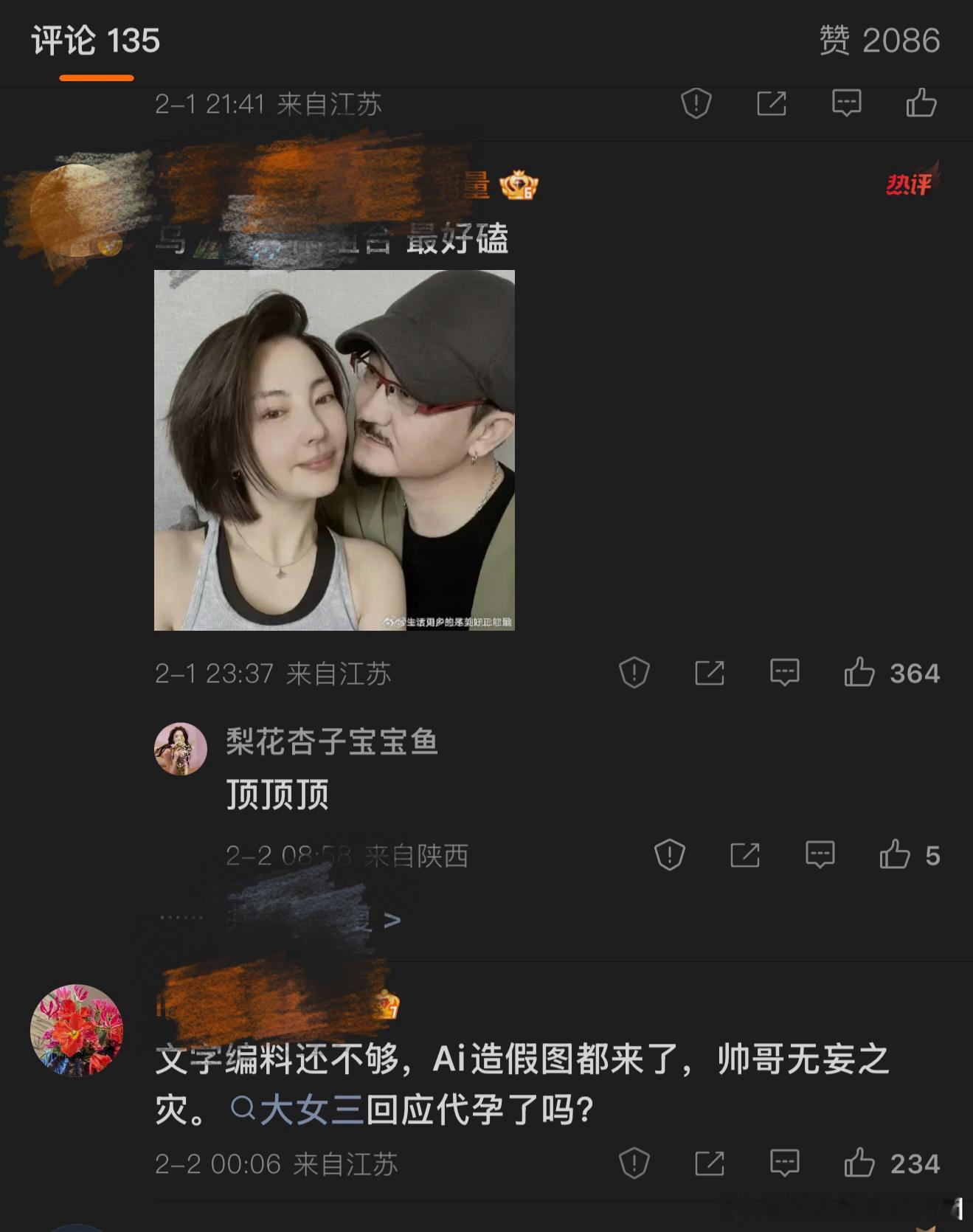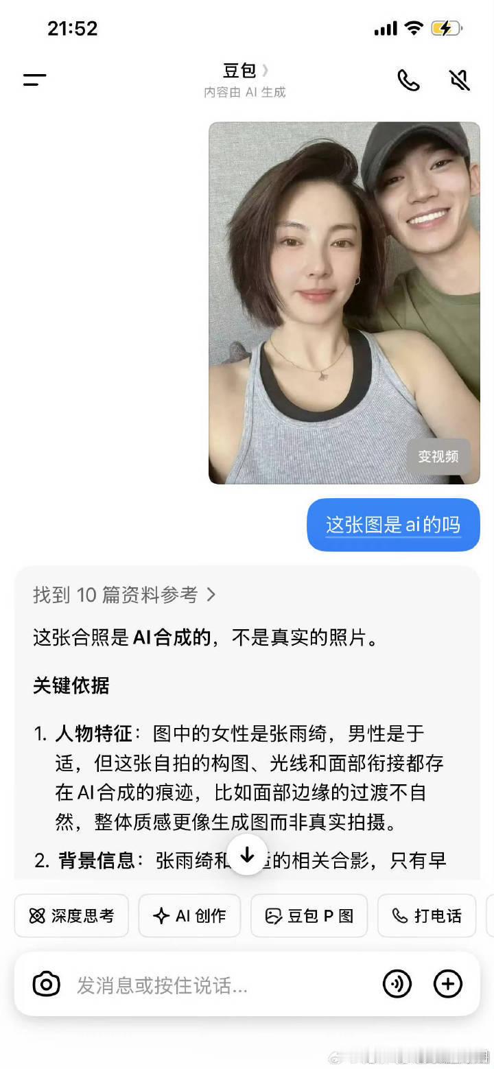 郫县昨天发了一张于适和张雨绮的AI合照图,我不知情所以发出来了,后来粉丝说这张图是Ai合成的,我就给删了。