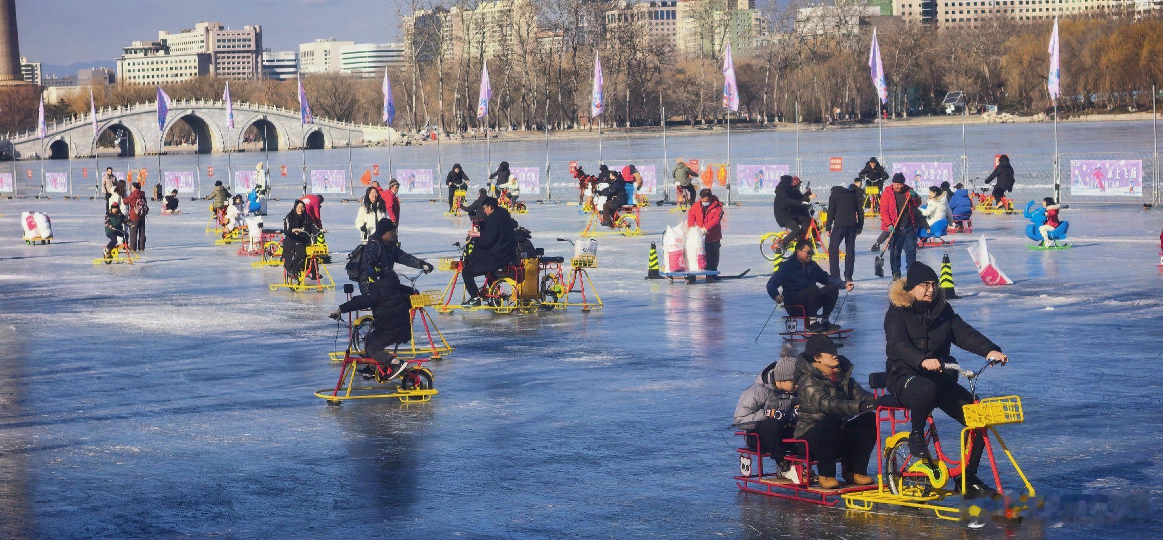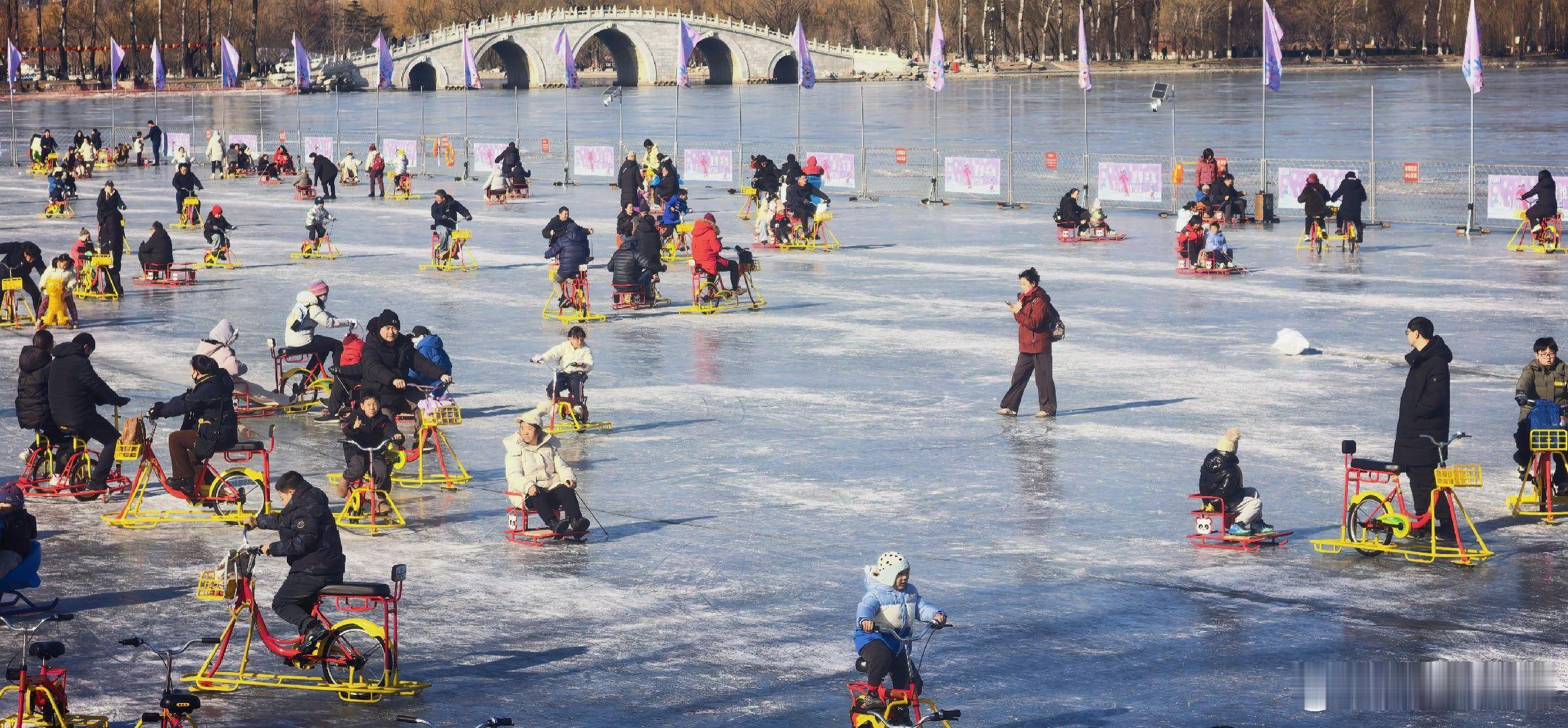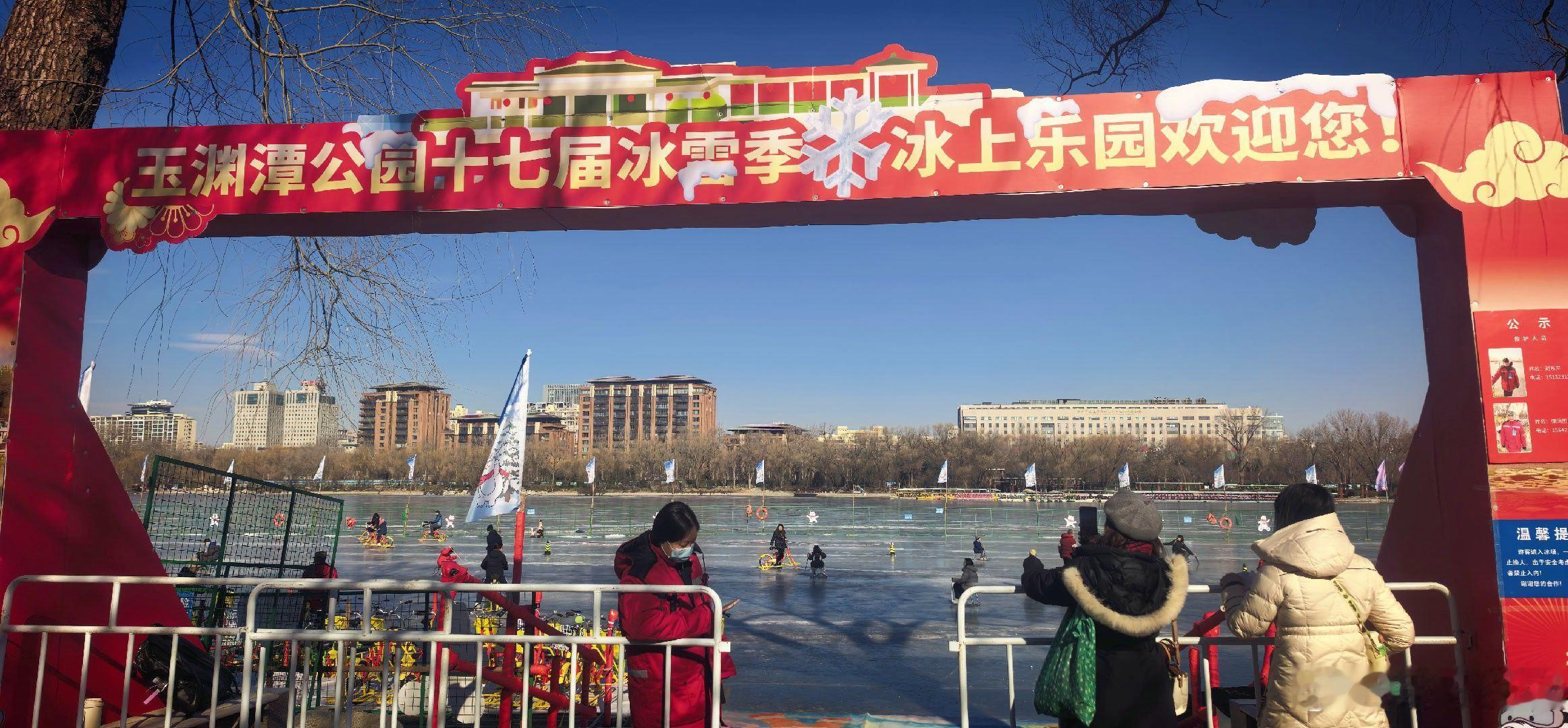 玉渊潭公园冰场上热闹非凡,走出户外人们尽情享受这如春般的冬日,连红梅花儿也含苞待
