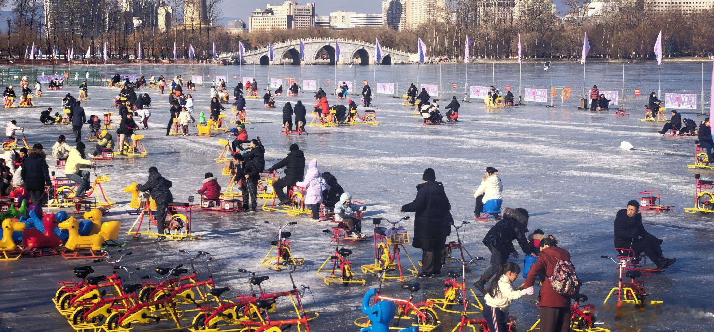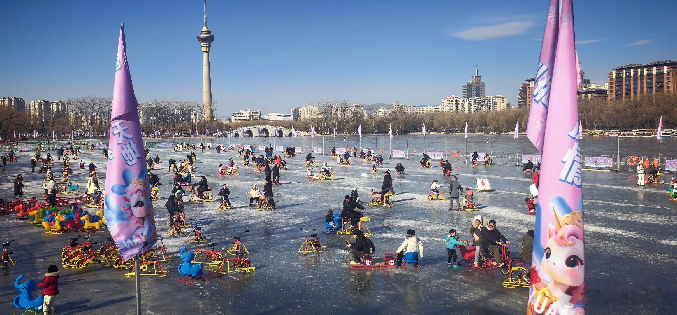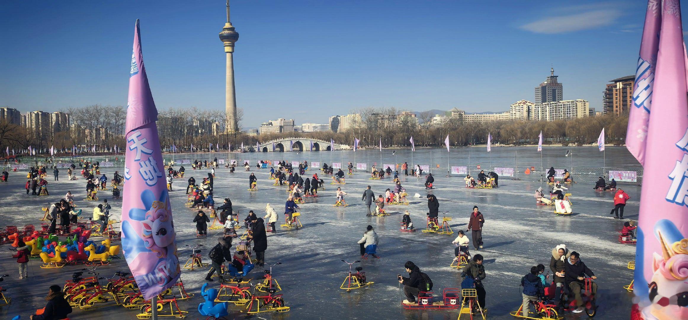 玉渊潭公园冰场上热闹非凡,走出户外人们尽情享受这如春般的冬日,连红梅花儿也含苞待