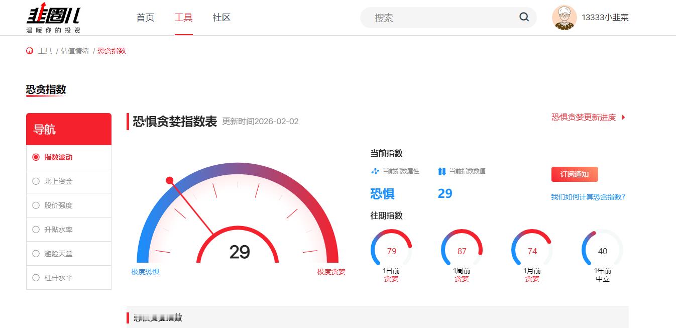 贪恐指数,上周五还是79,今天就变成29了,创新高个股数量占全部个股数量的1.1