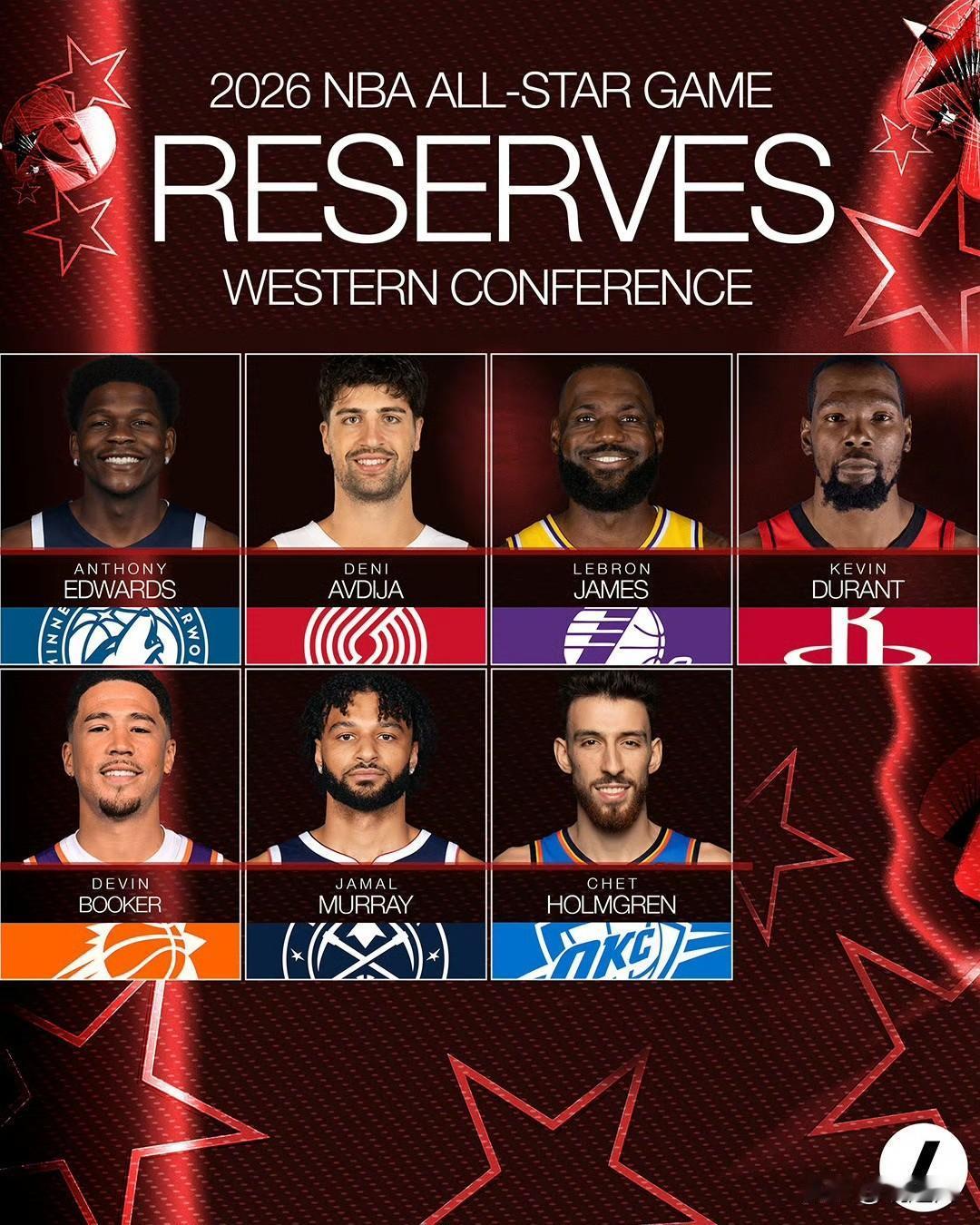 西部全明星替补谁应该被踢出去呢? 爱德华兹、切特、穆雷、布克、阿夫迪亚、杜兰特、