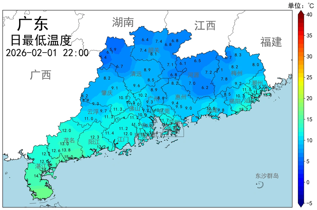 目前影响广东的冷空气将于周一(2月2日)下午逐步撤离广东,广东气温即将止跌回升。全省转多云⛅有阳光天气,部分地区天气明朗🌞,迎来长达4天的快速升温之旅。