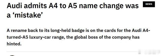 奥迪回应车型更名意识到决策失误还好,本来就没必要改,车型记忆混乱是很影响用户感知