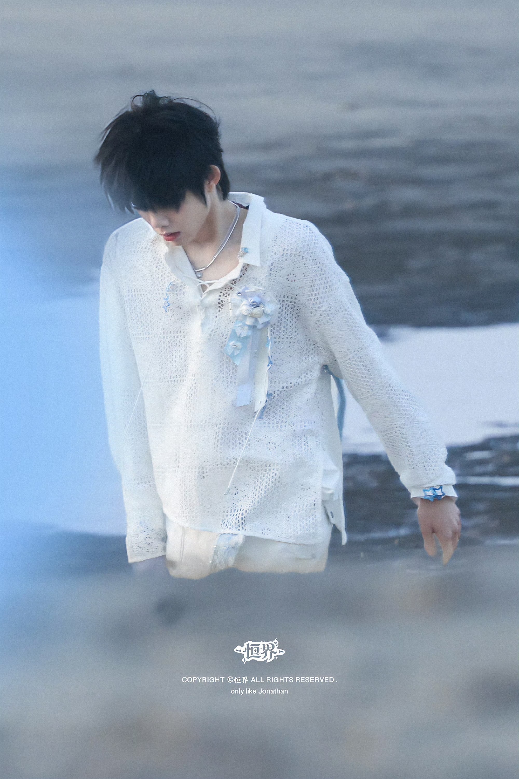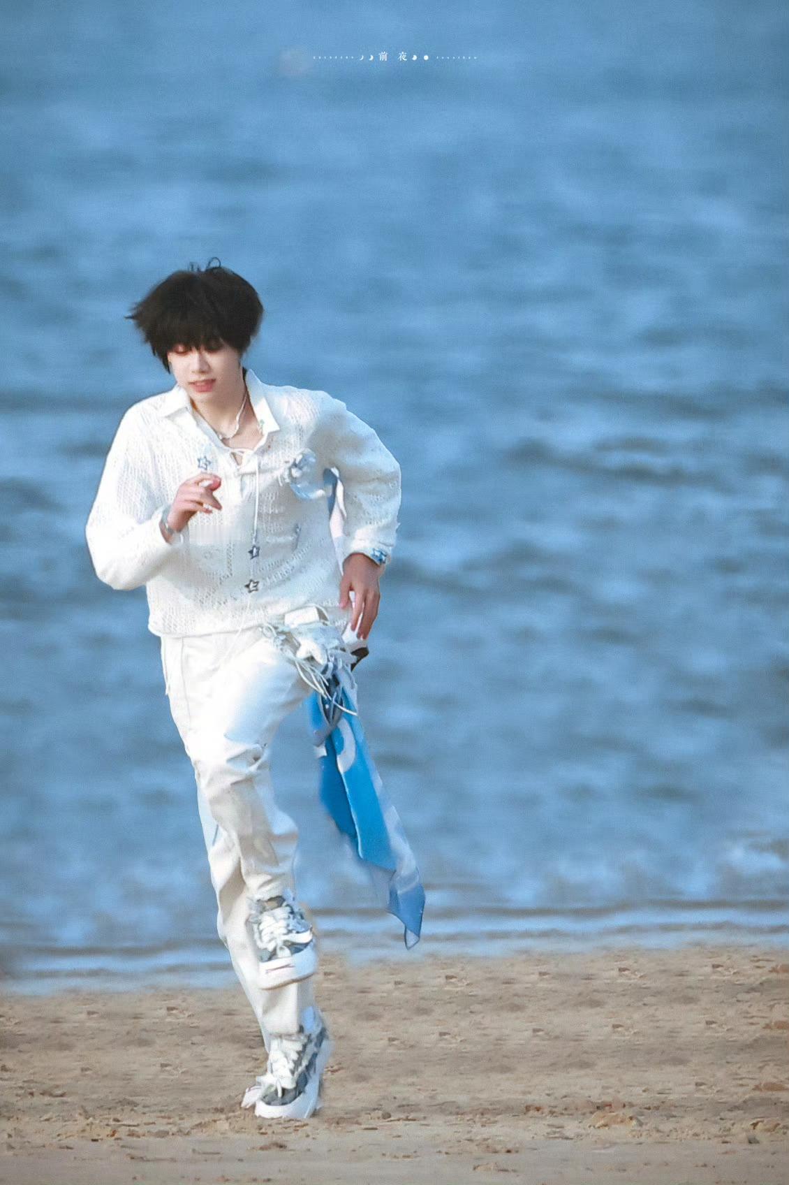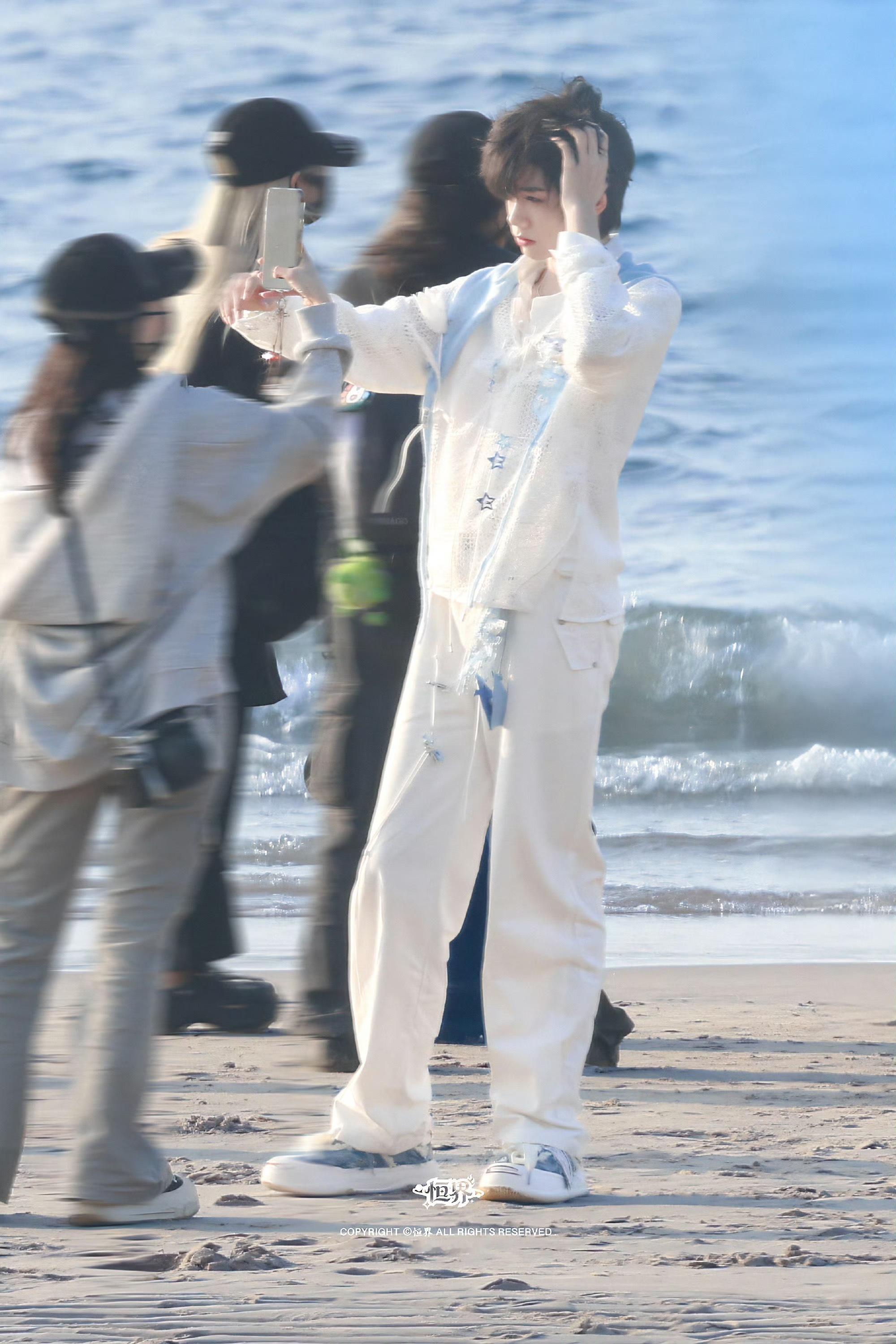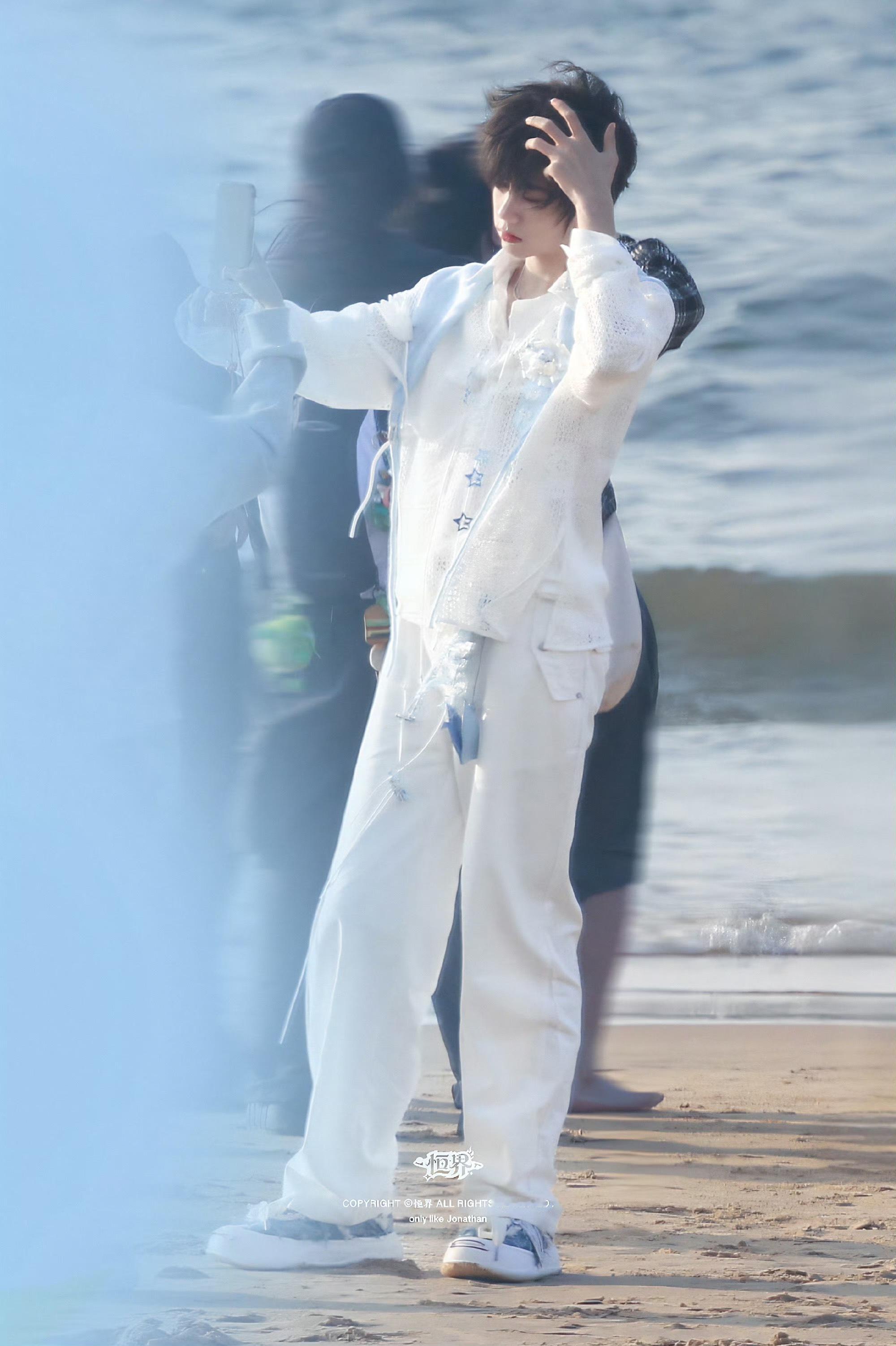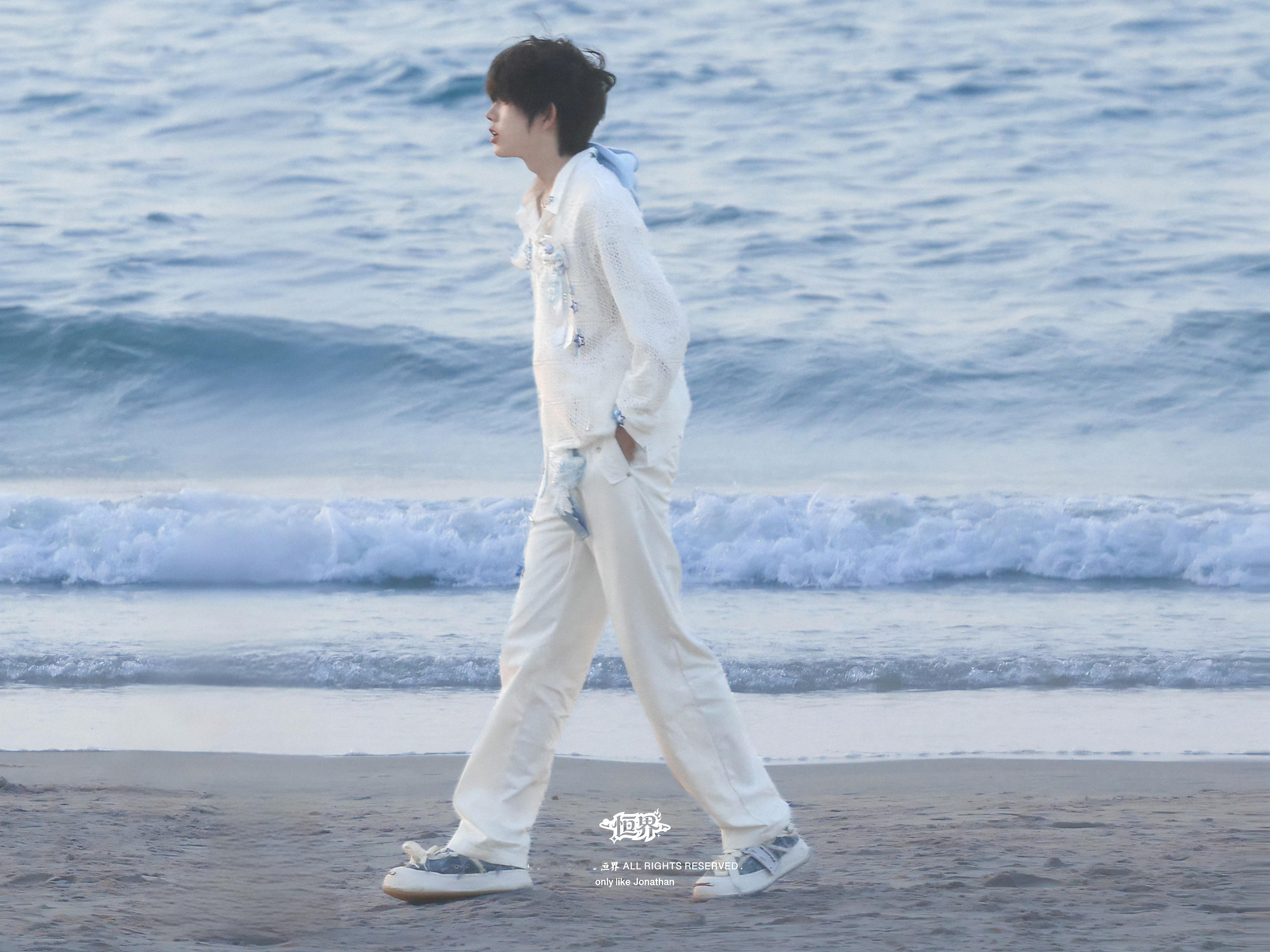 陈奕恒海边路透图,一身纯白造型清爽又少年感满满陈奕恒海边路透