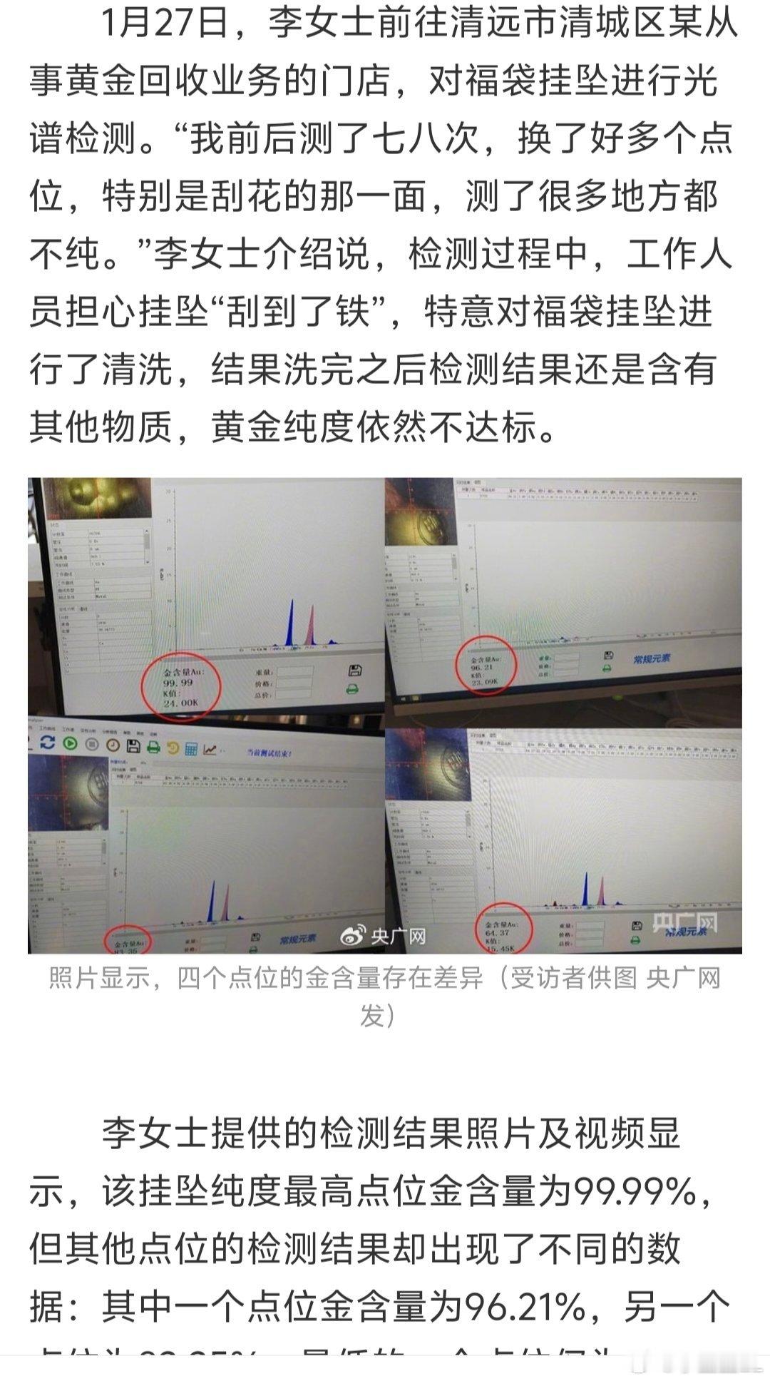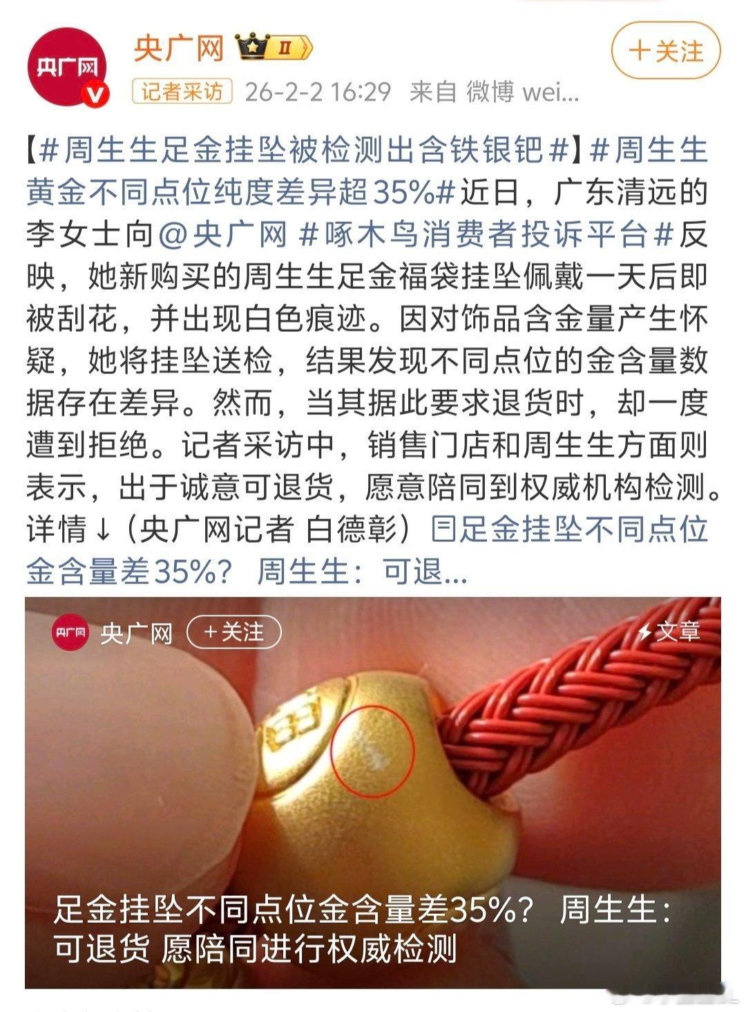 周生生足金挂坠被检测出含铁银钯天呐,这不会是真的吧?!周生生这么大个品牌,买的人这么多,如果真是足金里居然掺了铁银钯,这根本不是一个人简单假一赔三的事了!这必须蹲官方一个正面说法了...