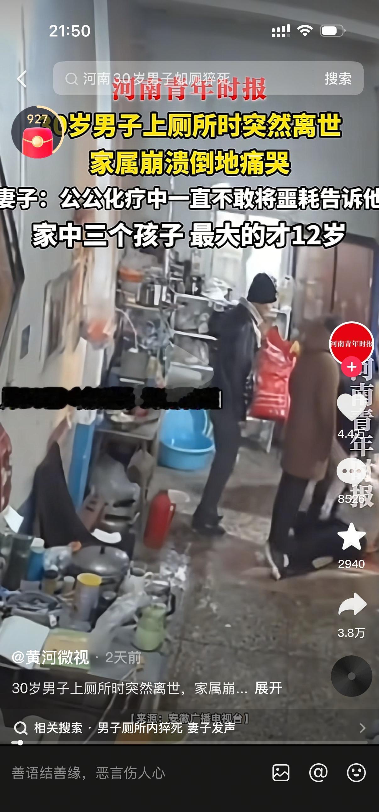 太让人难受了,30岁正是扛着全家的年纪,就这么没了。化疗的公公还瞒着,三个孩子最大才12岁,妻子该有多绝望,生活的重担一下子全压在她身上!