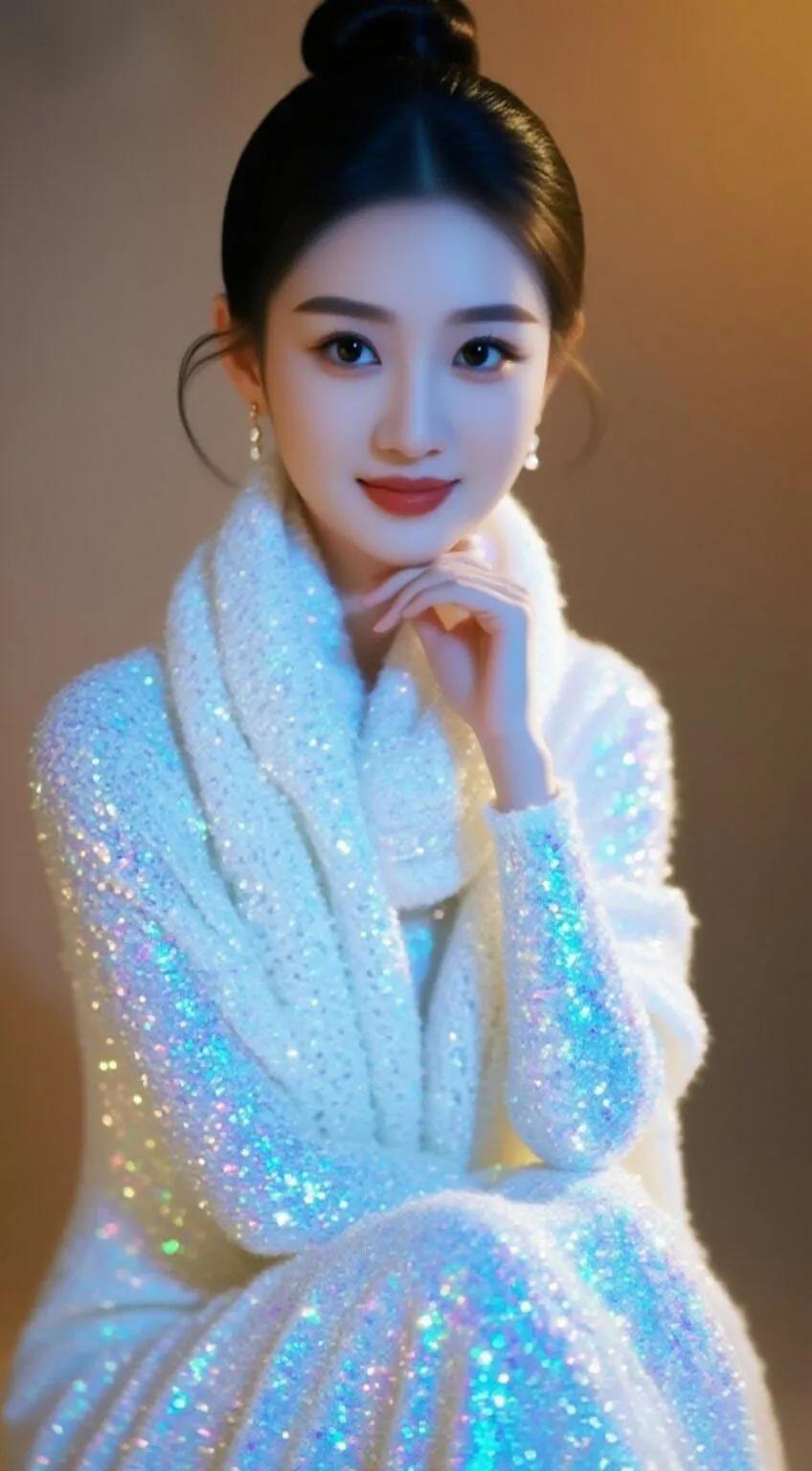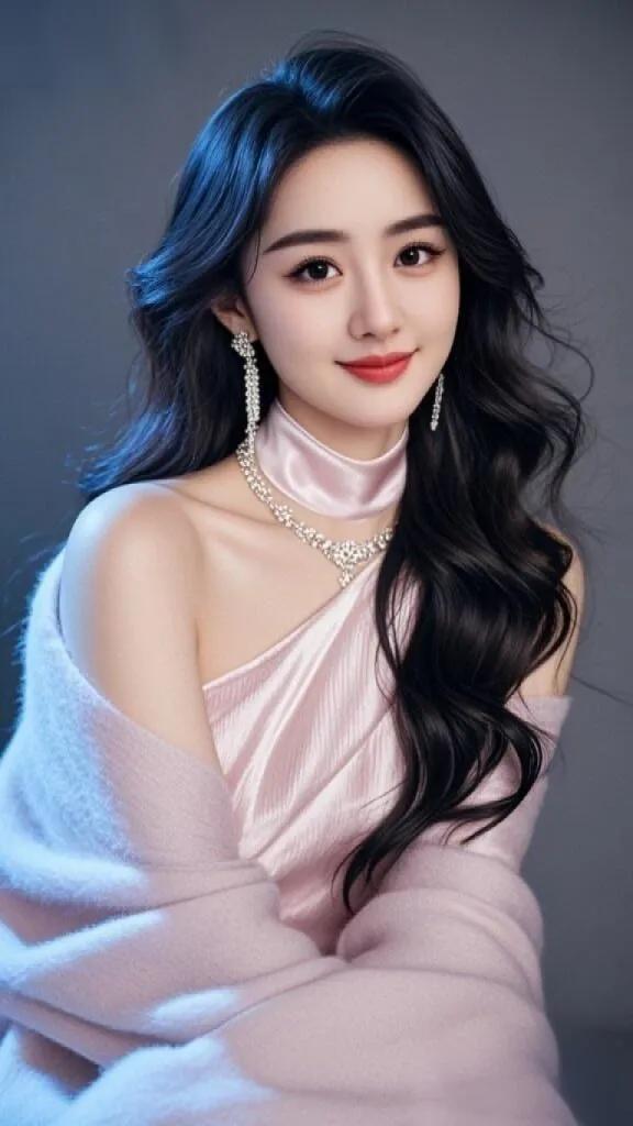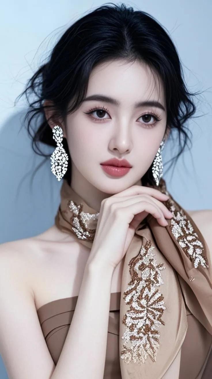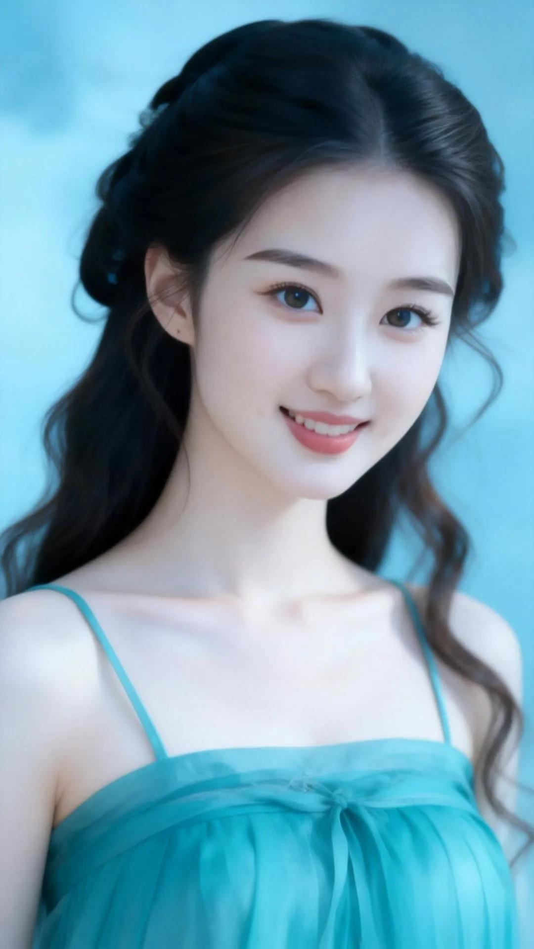 优雅红唇,蓝裙飘逸,闪耀的珠宝,完美女神!💄✨👗💎