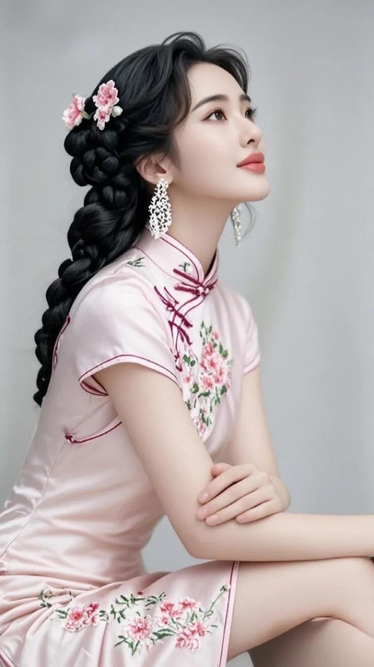 粉色的旗袍,优雅的笑容,尽显东方女性的魅力。