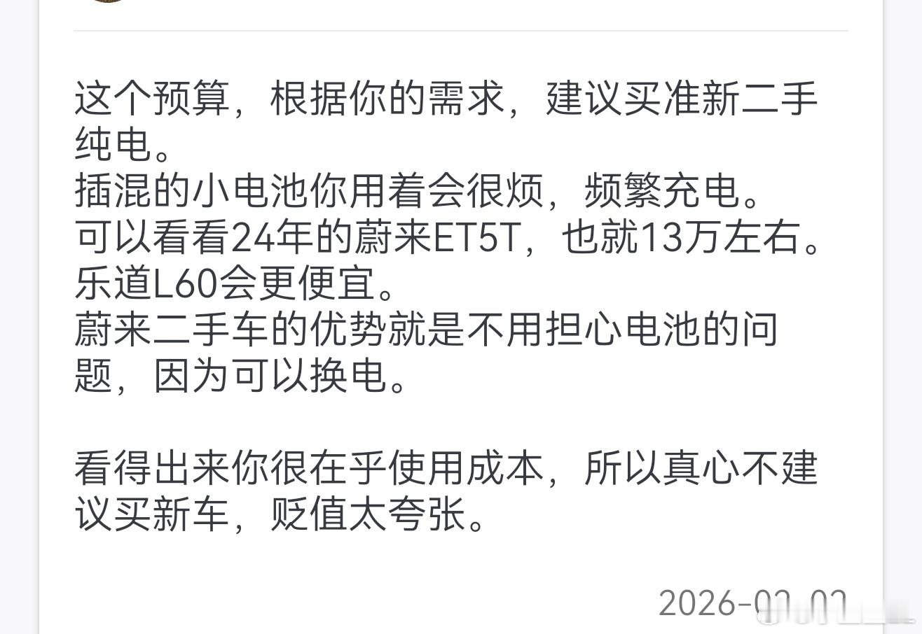 这个价位的预算,还指定新能源。我唯一推荐的就是二手的蔚来和乐道。二手的新能源最担心的不就是电池质保问题吗?二手的蔚来才是换电的致命优势...