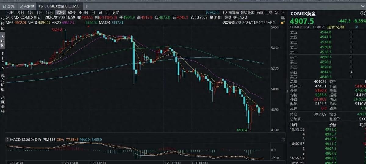 谁能想到,多少人一觉醒来,账户直接亏掉一大半!国际金价单日狂跌超10%,国内期货、金店价格集体跳水,加杠杆的投资者直接爆仓血本无归! 据大象新闻等媒体报道,2月1日伦敦金现单日暴跌553.4美元,跌幅10.18%,从1月29日的高点算起,最大回撤达到16.4%;国内黄金T+D跌至1070元/克,跌幅9.47%,沪金主连期货跌幅9.83%。周大福、老凤祥、周大生等知名金店金价同步大降,周大生跌幅更是高达15.43%,银行投资金条大多走低,仅浦发银行小幅上涨,白银跌幅更是创下几十年来少见的纪录。 这一切的核心导火索,就是1月29日美联储宣布暂停降息,打破了市场的宽松预期,再加上前期价格暴涨涌入大量投机资金,交易所提高保证金后,高杠杆账户被迫卖出平仓,引发连环抛售,白银市场体量小、投机氛围重,跌势也就比黄金更凶。 这事在网上直接炸了锅,网友的感受天差地别:有人庆幸自己没跟风追高,平平安安没受损失;有人哭诉自己加杠杆进场,短短几个小时就亏光本金;准备买金做首饰、办喜事的人,全都扎堆去胖东来专柜,它的金价远低于其他品牌,成了暴跌行情里的“避风港”。 不少早前提醒风险的声音被网友翻出,大家才醒悟,全民都喊着涨的时候,最该保持冷静,一致的看涨预期,往往藏着最大的风险。 这波大跌全是真实市场走势,前期黄金暴涨30%、白银暴涨近68%,价格早已脱离实际使用价值,全靠投机情绪和热钱支撑。 回顾历史,白银不止一次出现这样的暴涨暴跌,早年的操纵案、后续的大幅回撤,教训一次次重演,可总有人被快钱迷了眼,无视风险重仓加杠杆。反观胖东来不跟风炒溢价,坚守实在定价,恰恰证明脱离真实价值的炒作,早晚都会跌回原形。 看来投资从来不是赌运气,这波真实的行情波动,给所有人提了醒,不要碰自己搞不懂的杠杆,不要在全民狂热时高位追涨,永远要敬畏市场、管住贪心。 市场从来不缺赚钱的机会,缺的是不被情绪带偏的清醒,和守住本金的底线。只有在自己的认知范围内做选择,远离盲目投机,才能在起伏的市场里,守住自己的辛苦钱。