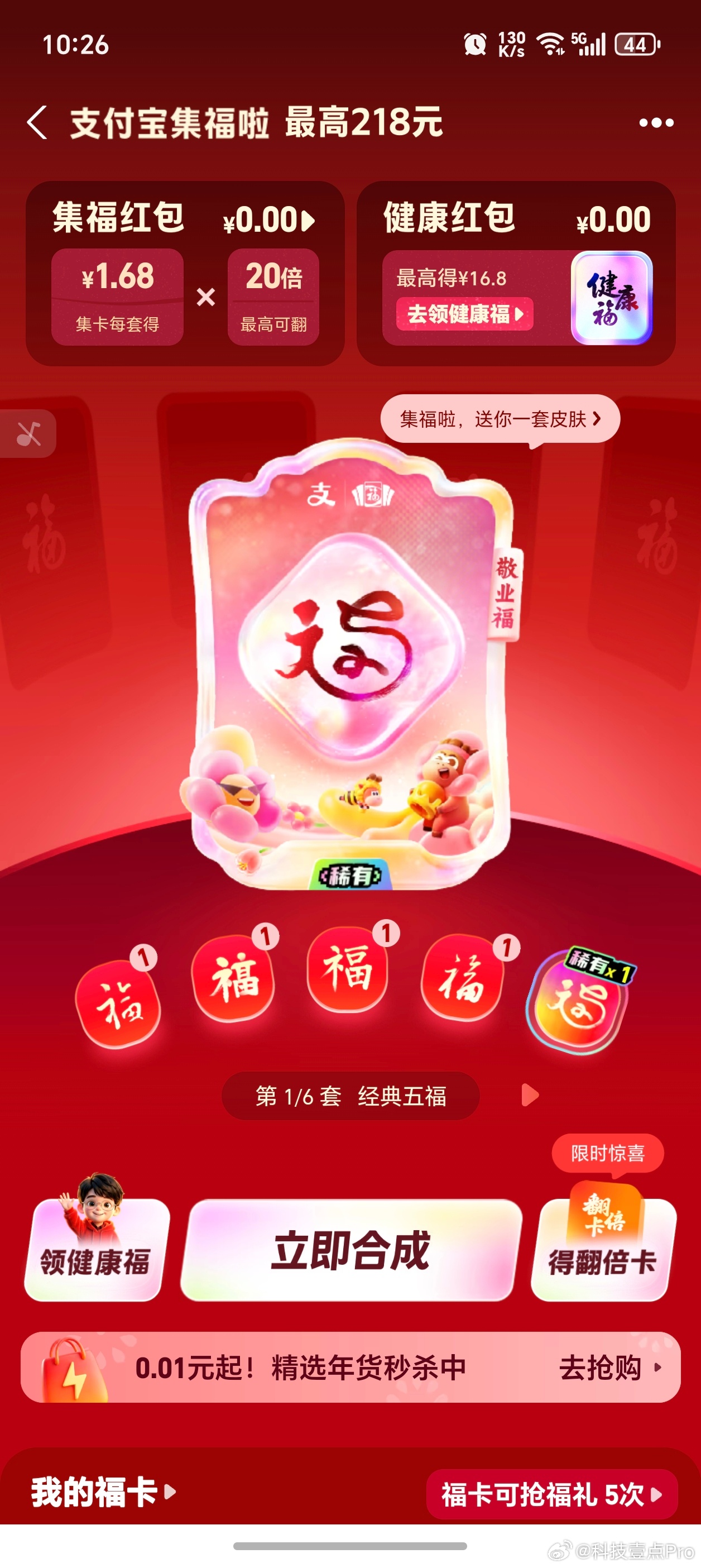 支付宝集五福今年的集五福热度不高啊,太简单了,一分钟就搞定了,五分钟第二套也搞定