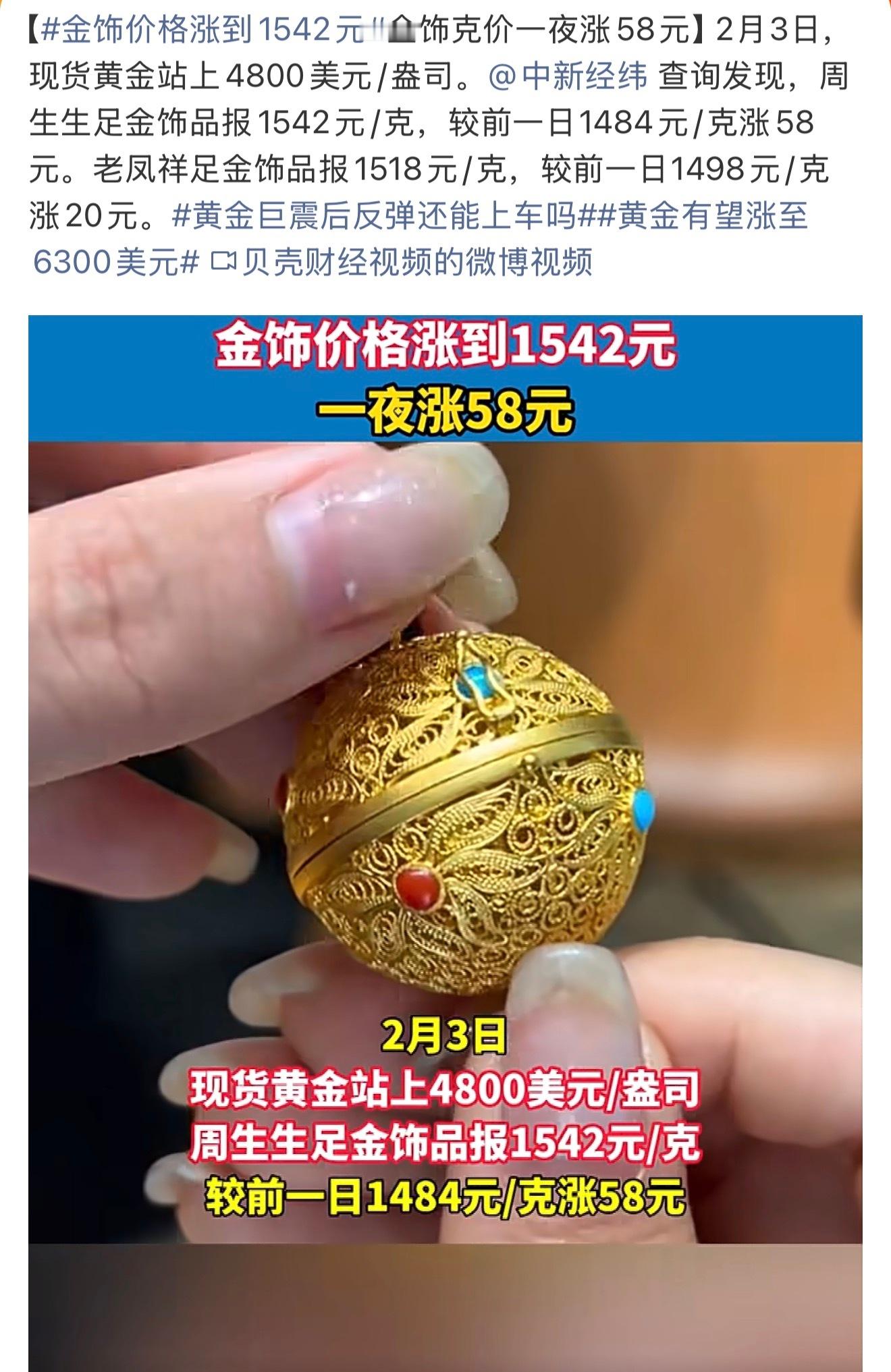 金饰价格涨到1542元涨吧,涨吧,马上就过年了,猜到肯定会涨的