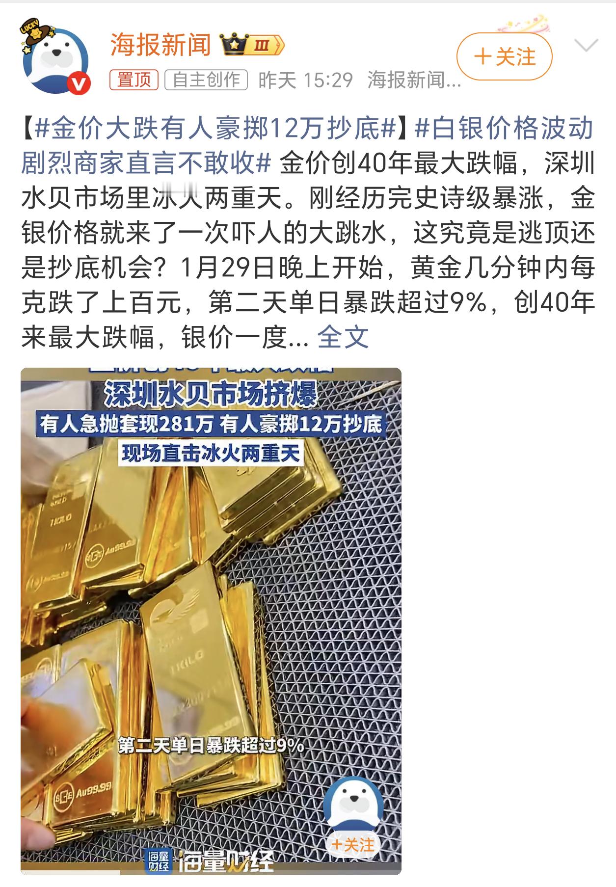 金价大跌有人豪掷12万抄底12万叫豪掷?