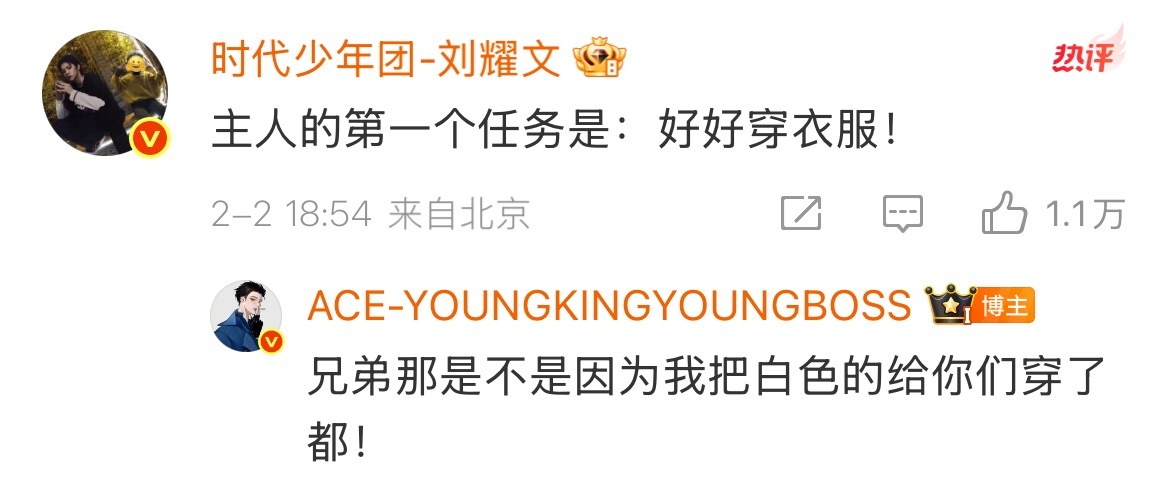 刘耀文回应黄子韬光屁股幸好韬把白色的给哥哥弟弟穿了不然还看不到“光屁股”韬牛局有的是力气,但是衣服也要穿好