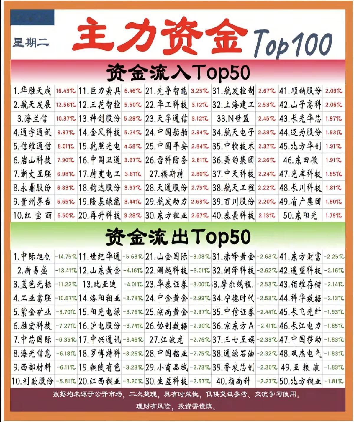 2.3周二 主力大资金 抢筹出逃个股榜TOP50 ! 资金 抢筹热点: 1.军工电子,海工装备 2.光伏设备,储能 3.房地产 4.化工原料涨价 5.通信设备 资金出逃:贵金属资源股、农业、油气
