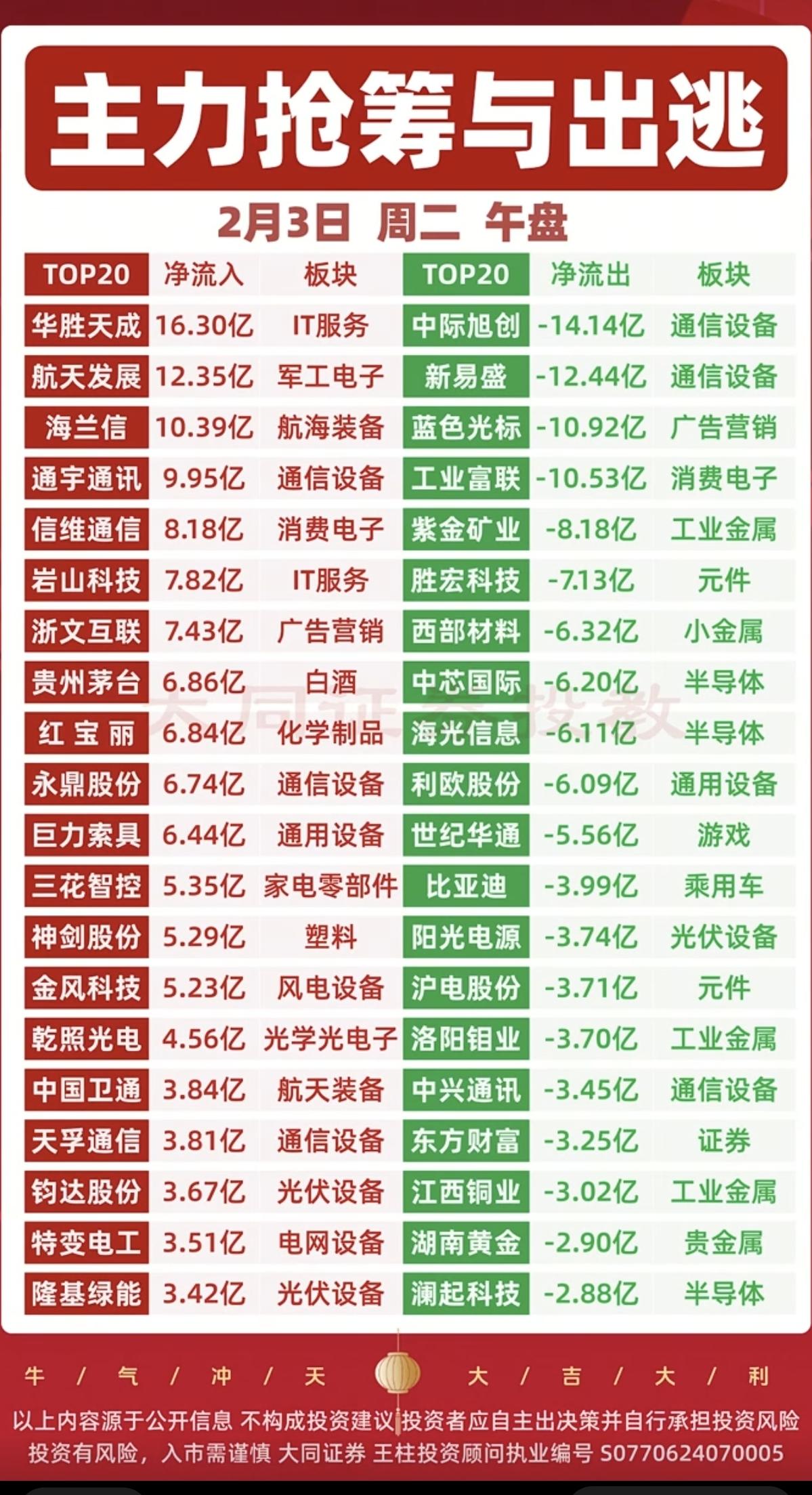 2.3周二 主力大资金 抢筹出逃个股榜! 抢筹个股: 房地产、军工装备、高宽带内存、碳化硅、工程机械、玻璃玻纤等获得资金关注。 出逃个股: 稀缺资源,矿产金属、食品饮料、转基因农业等资金出逃