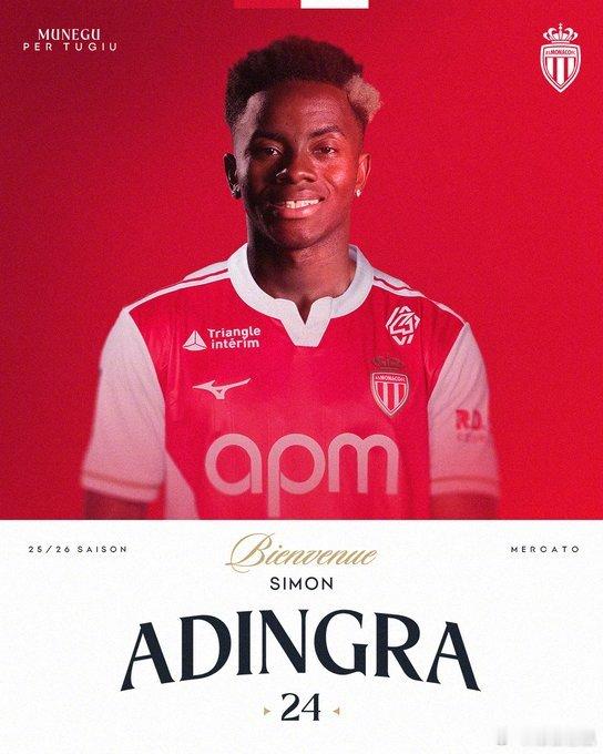 【官方】摩纳哥租借签下24岁的桑德兰边锋阿丁格拉(Simon Adingra),据悉有17M欧元的买断条款,这名科特迪瓦国脚半年前从布莱顿接近25M欧元转会黑猫,踢了15场比赛,打入1球。法甲