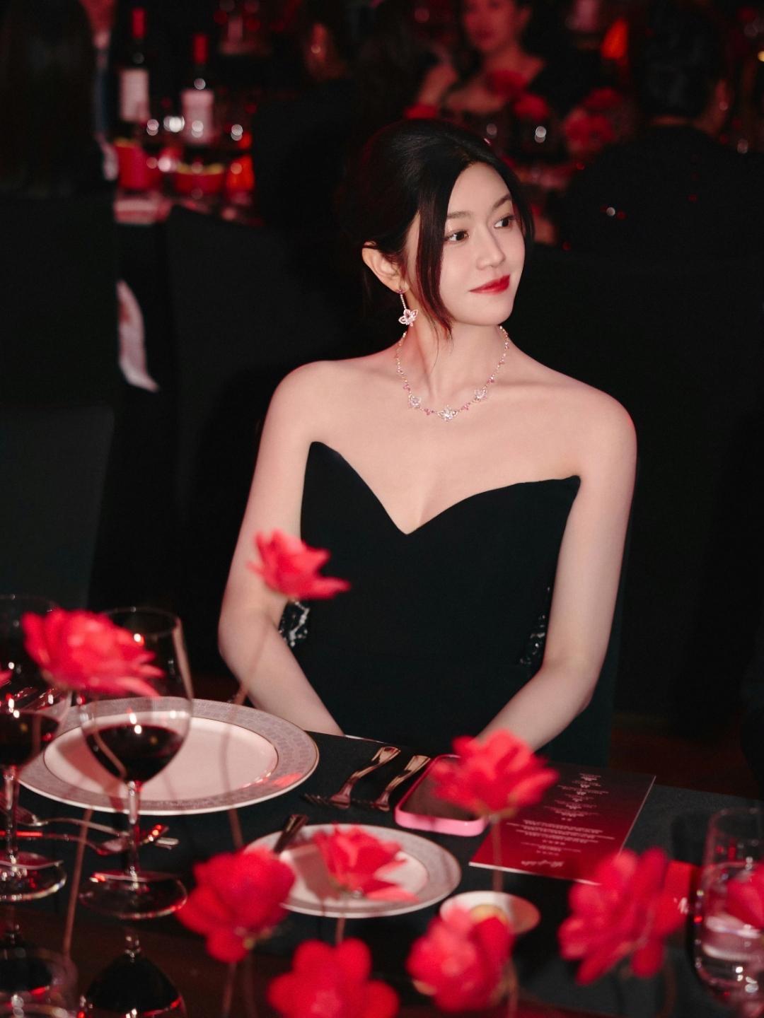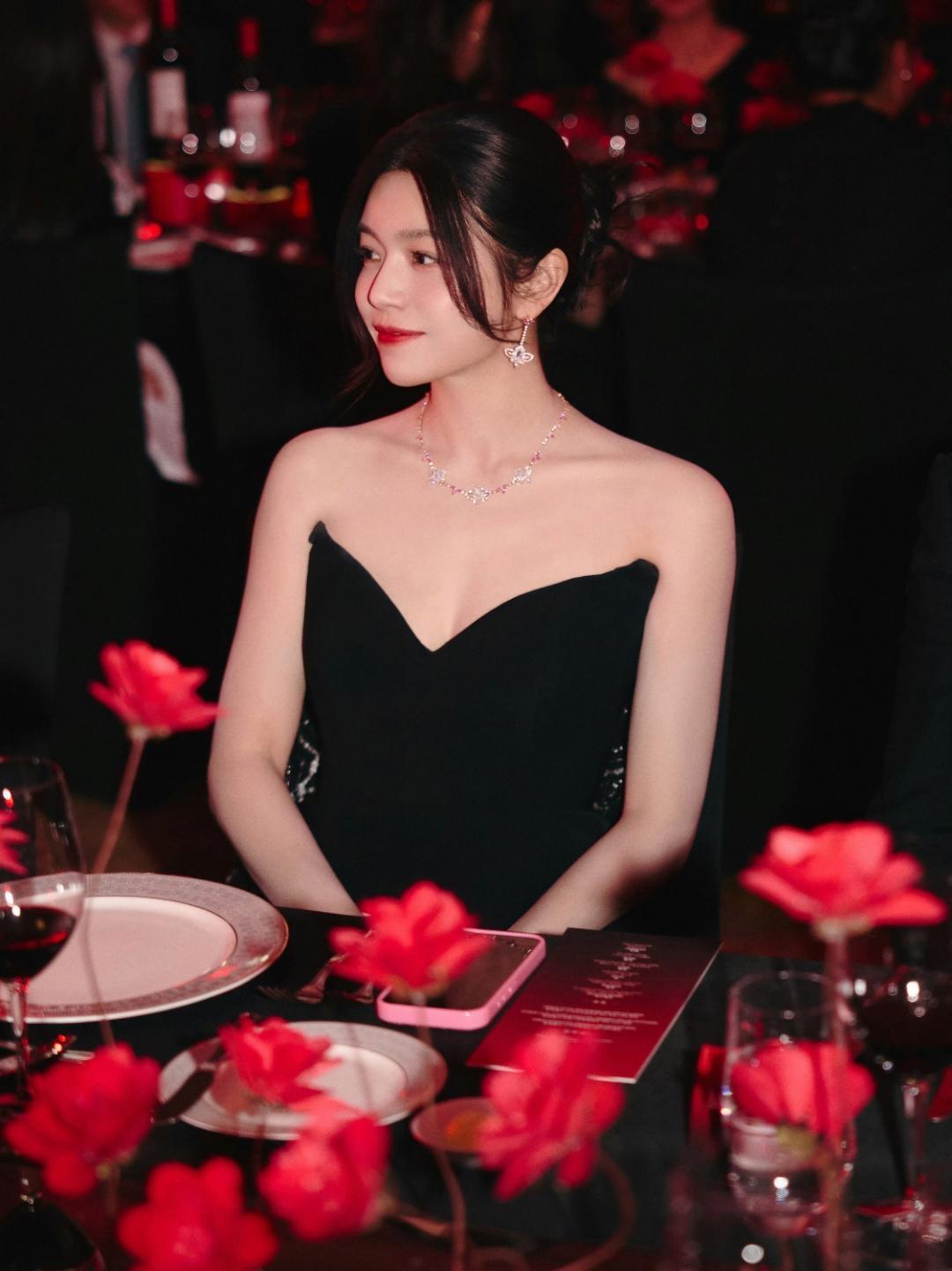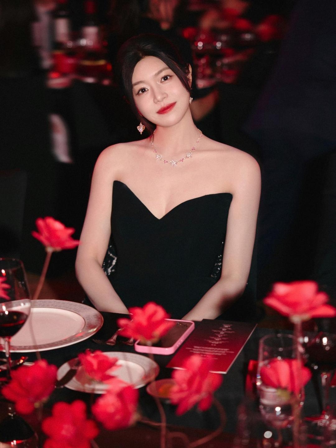 当暖红灯光铺满晚宴现场,陈妍希一袭抹胸黑裙亮相,把“温柔而有力量”的气质写进了每一处细节里。 V型抹胸勾勒出流畅的肩颈线条,高开衩裙摆随步伐轻晃出丝绒般的光泽,极简剪裁里藏着高级感。粉钻项链与耳饰在暗调里闪着细碎光芒,红唇是唯一的亮色,把“克制的精致”诠释得恰到好处。