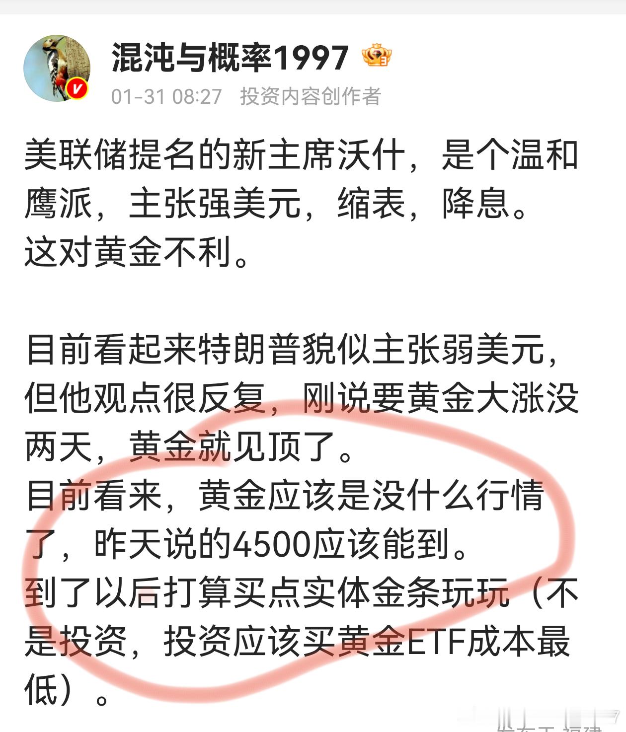 前天说黄金跌破4500美金就买点实物玩玩。昨天下午2点多,跌到4400多点。我知行合一,果断出手在银行app买了点实物黄金。拿的不多,如果大资金应该做黄金ETF才好。以后再跌再加就是。