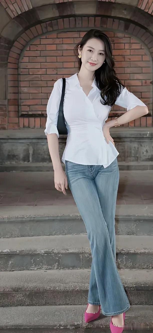 优雅白衬衫, 自信的微笑, 都市女孩自然美