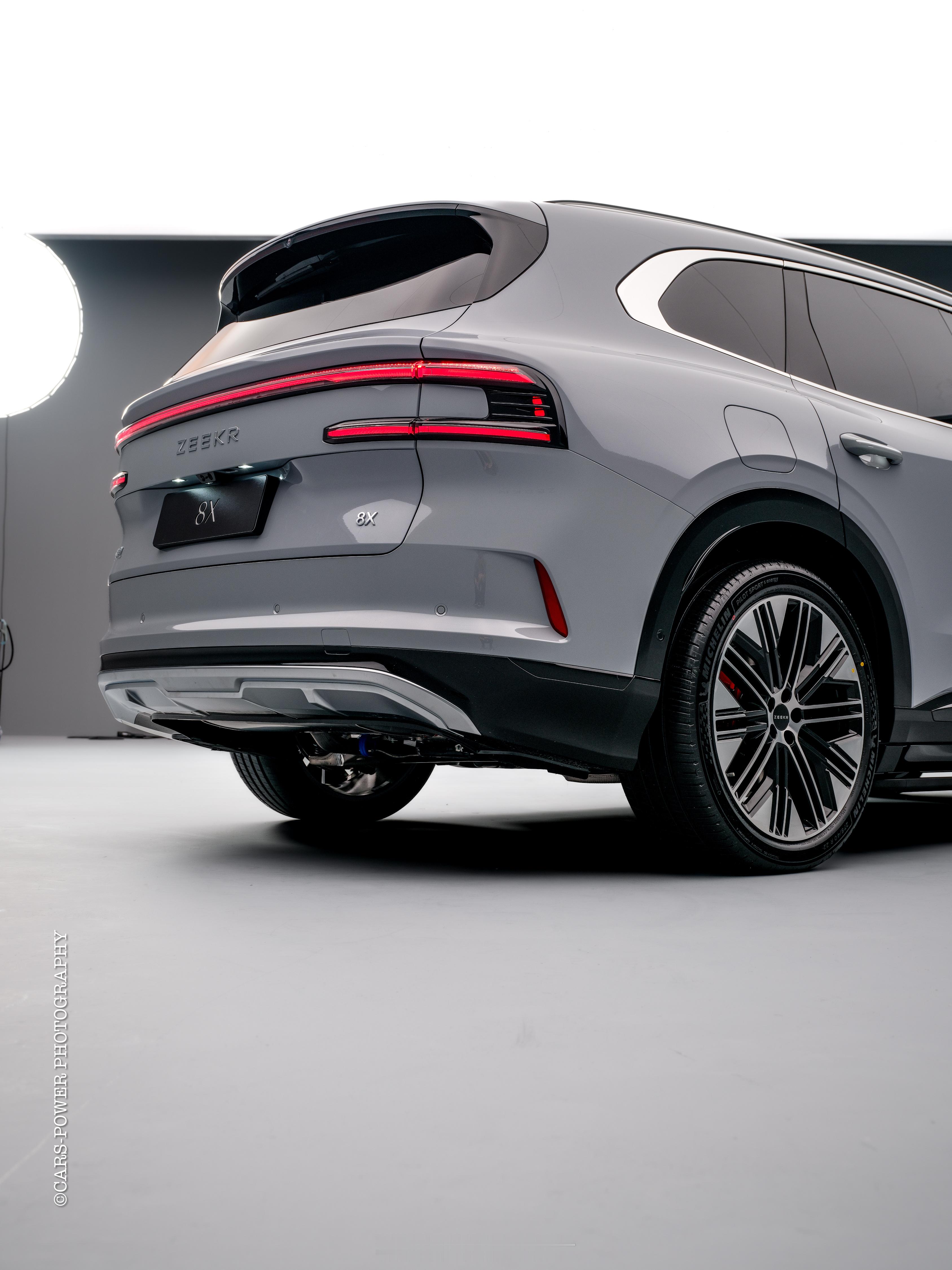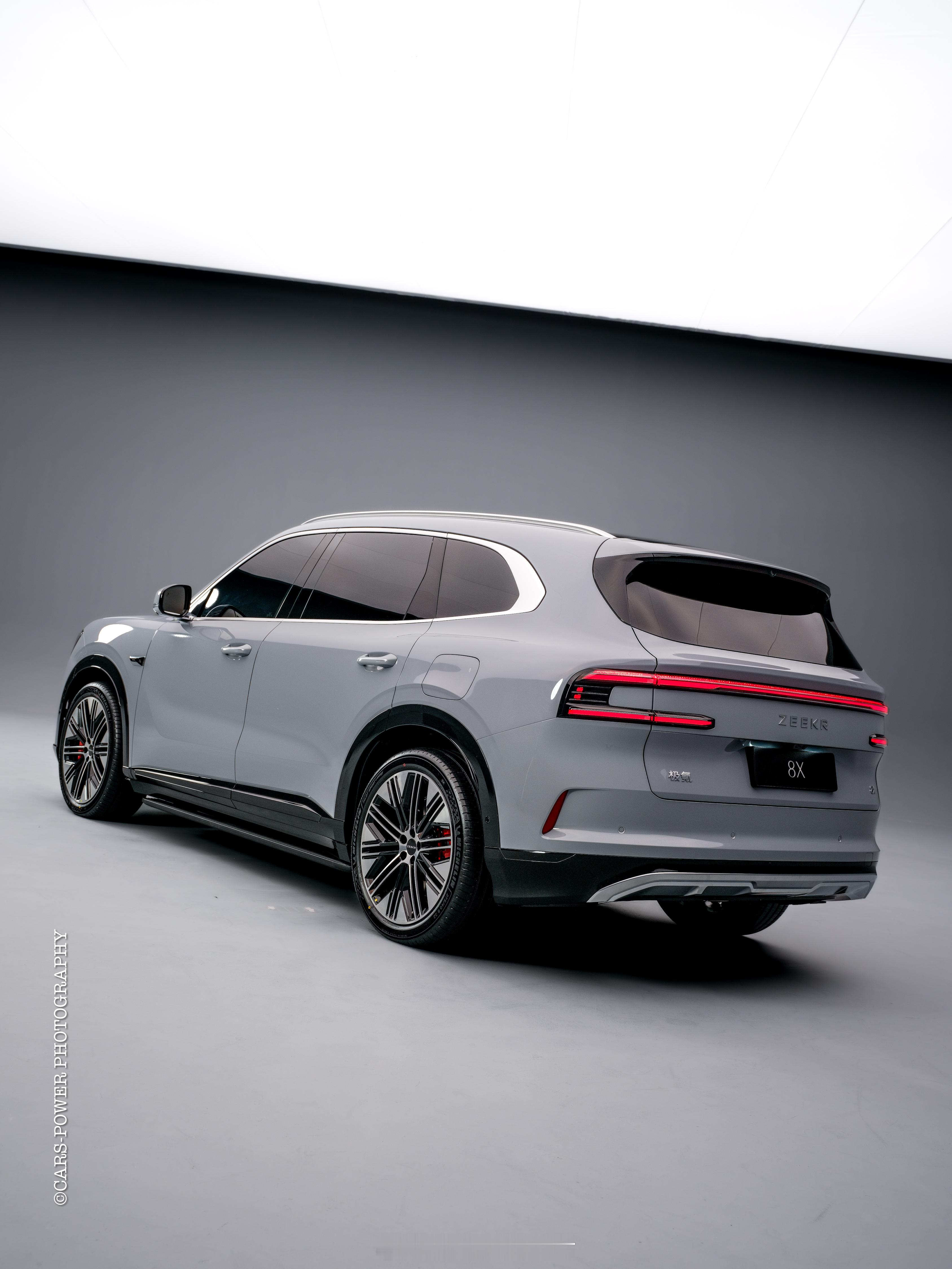 🩶🩶🩶极氪8x 玄武灰涂装🩶🩶🩶类似于宝马的布鲁克林灰不过亮度更高、金属光泽更多一些搭配8X的大面积镀铬部件质感非常好车尾45度(图6)甚至有点宝马X5的感觉这颜色是你的菜吗?极氪8x实车亮相