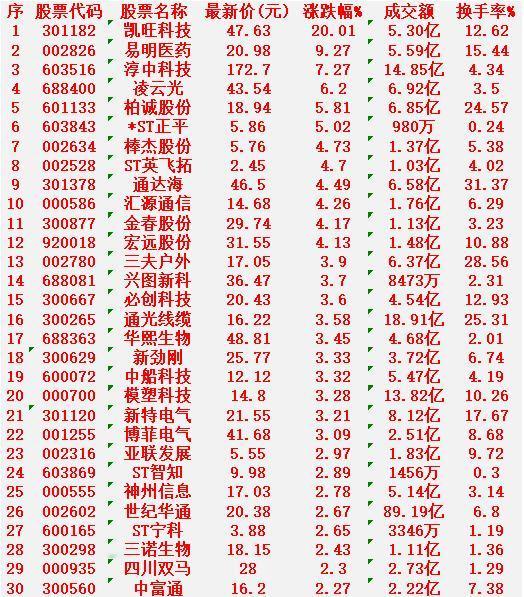 2月3日,KDJ日线金叉的名单汇总 凯旺科技:最新价 47.63元,涨跌幅 +20.01% 易明医药:最新价 20.98元,涨跌幅 +9.27% 淳中科技:最新价 172.70元,涨跌幅 +7.27% 凌云光:最新价 43.54元,涨跌幅 +6.20% 柏诚股份:最新价 18.94元,涨跌幅 +5.81% ST正平:最新价 5.86元,涨跌幅 +5.02% 棒杰股份:最新价 5.76元,涨跌幅 +4.73% ST英飞拓:最新价 2.45元,涨跌幅 +4.70% 通达海:最新价 46.50元,涨跌幅 +4.49% 汇源通信:最新价 14.68元,涨跌幅 +4.26%