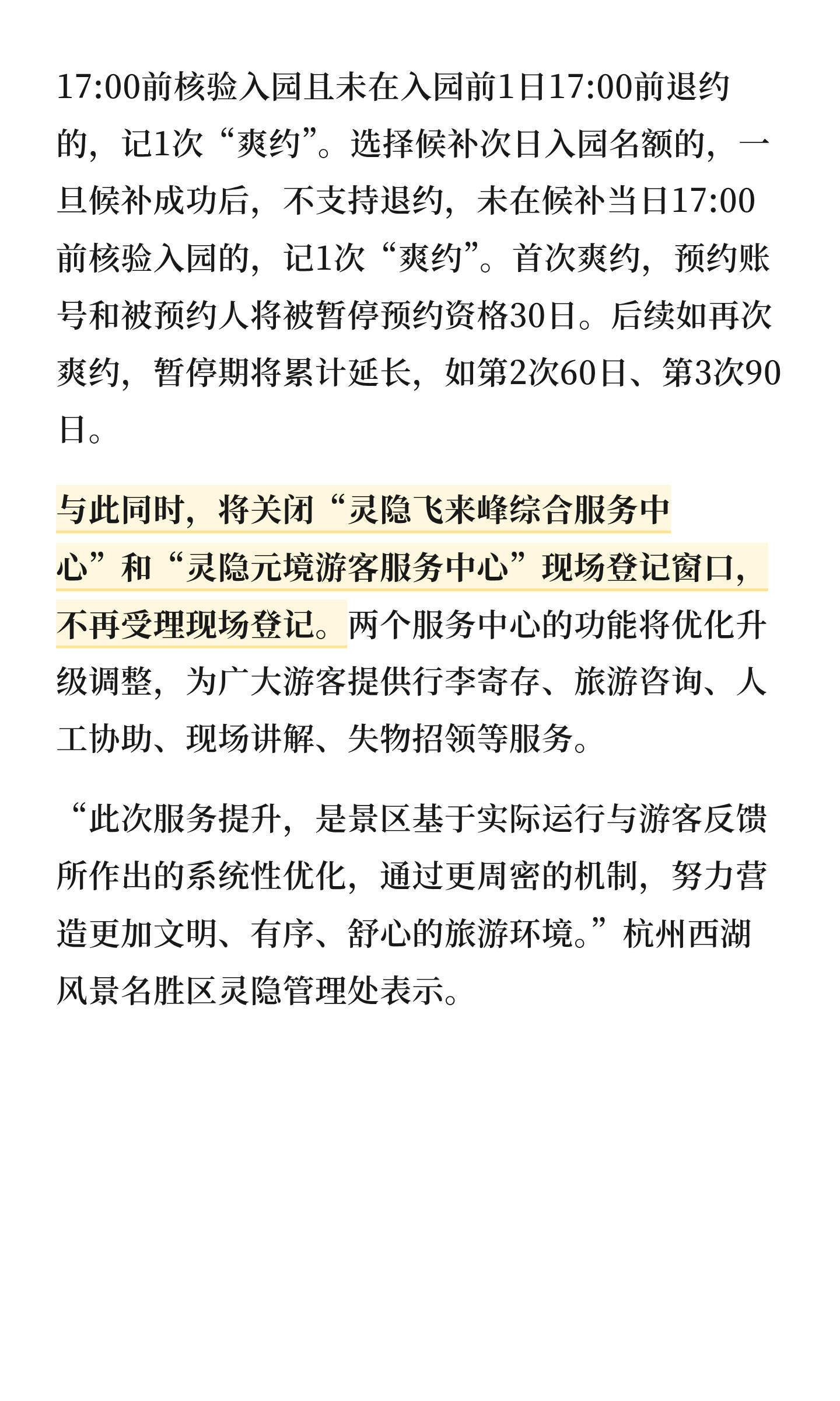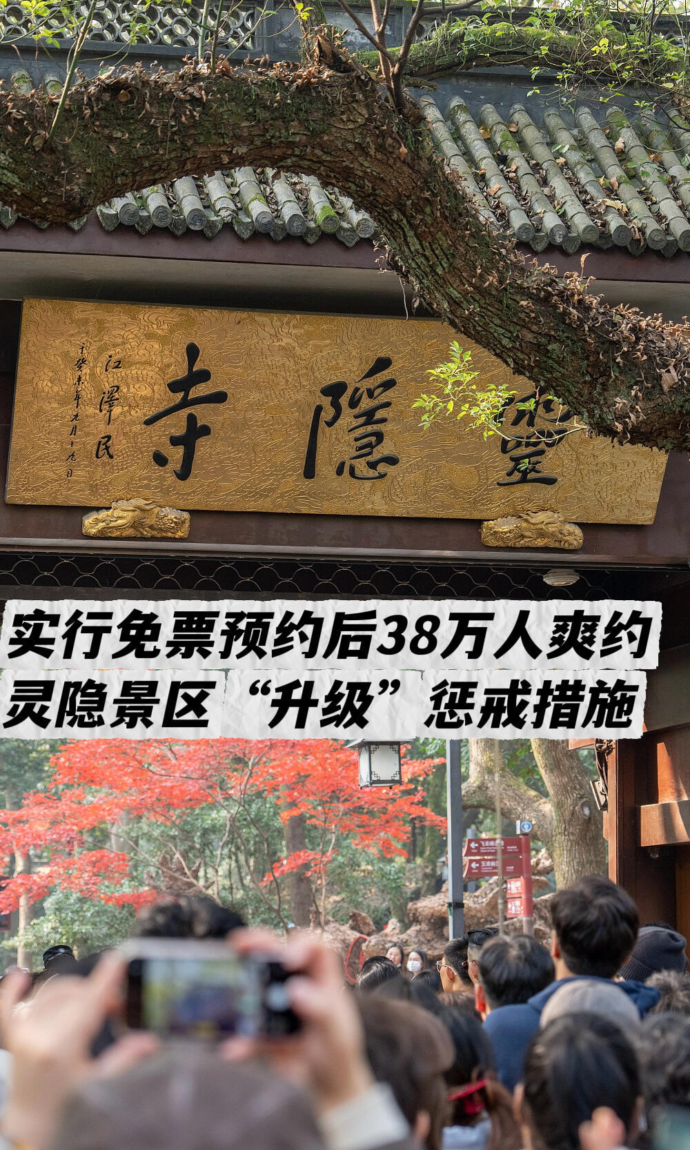 灵隐寺对38万爽约者出手了灵隐寺:爽约一次暂停预约30天