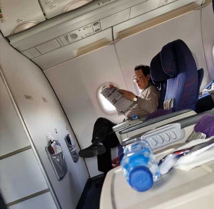 73岁唐国强在飞机上被偶遇,他坐在头等舱,翘着二郎腿看报纸,一副领导出行的派头,时不时看手机,真的太真实了!
