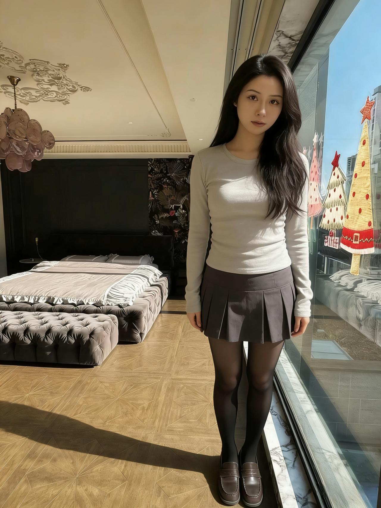 明窗透晴日,室静映芳颜。 发卷舒云影,衣轻衬玉肩。 帘垂纹叠叠,榻卧锦绵绵。 浅