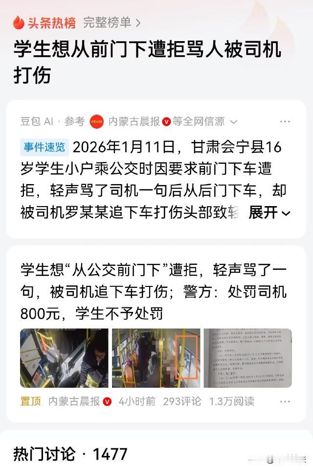 甘肃白银,16岁男生坐公交车,到站后想从前门下车,司机不给开门,男生小声骂了他一