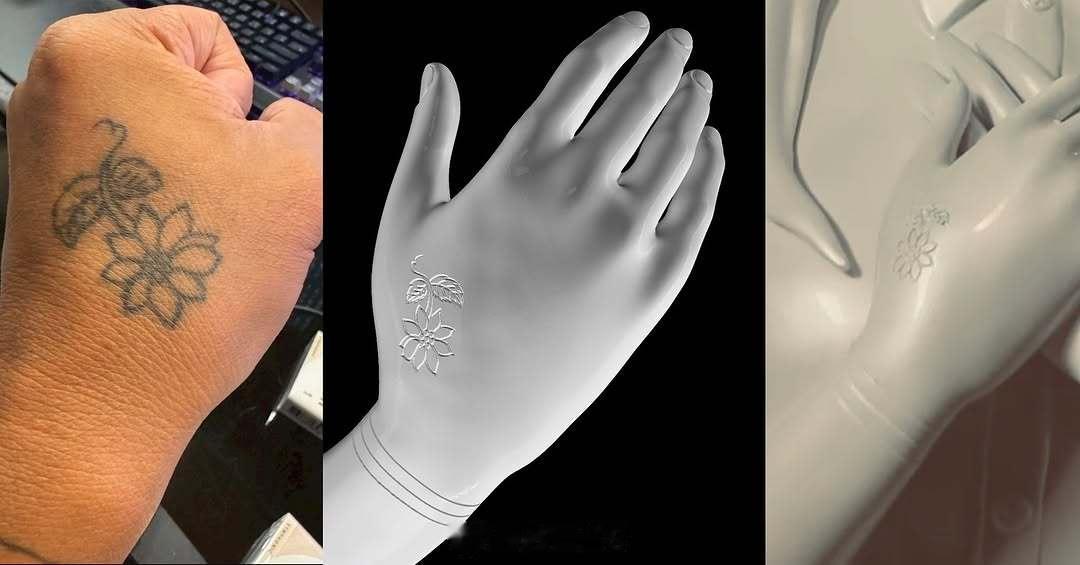 1️⃣雕像的右手背刻着大S纹的小花,是她跟具俊晔共同纹在手背上的小花,而手腕上也跟大S离开前一样刻着三道线圈(代表他们结婚三周年),如今具俊晔已经在自己手腕上纹上了第四圈;