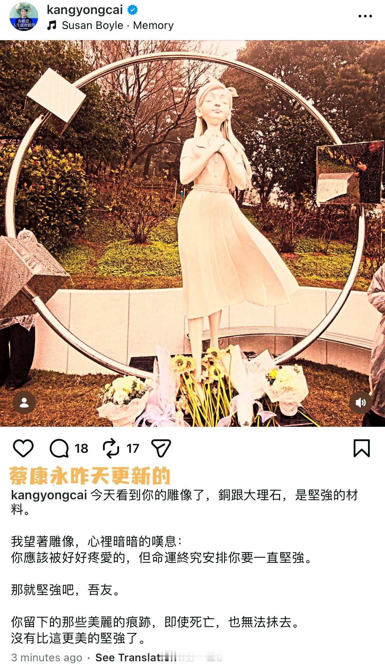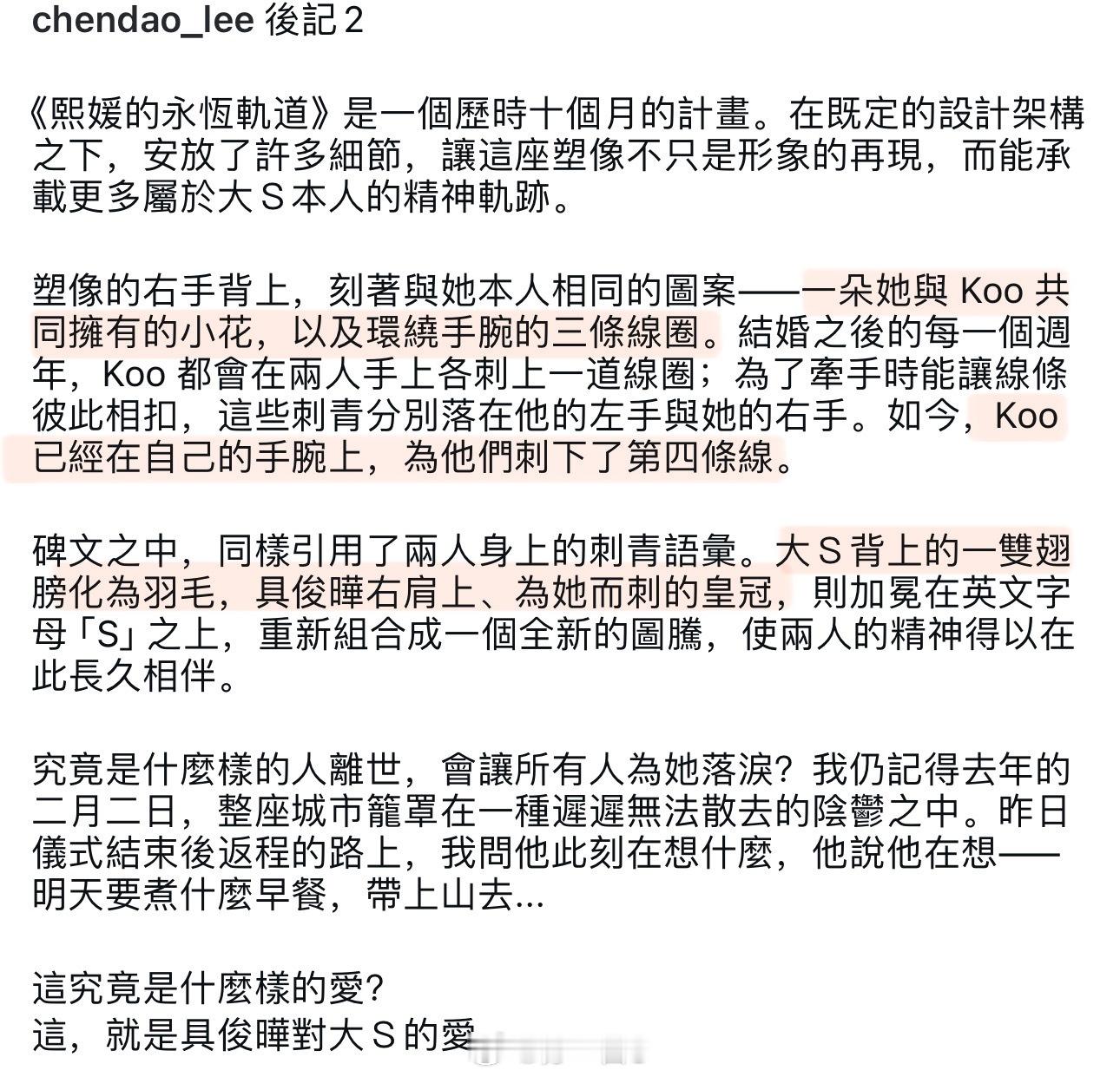 2️⃣碑文上的S logo也有讲究:皇冠是具俊晔手臂上的纹身(👑👉网页链接),羽毛是大S后背纹的那对翅膀(👉网页链接),重新组合成新的图腾,使得两人的精神得以在此长久相伴。
